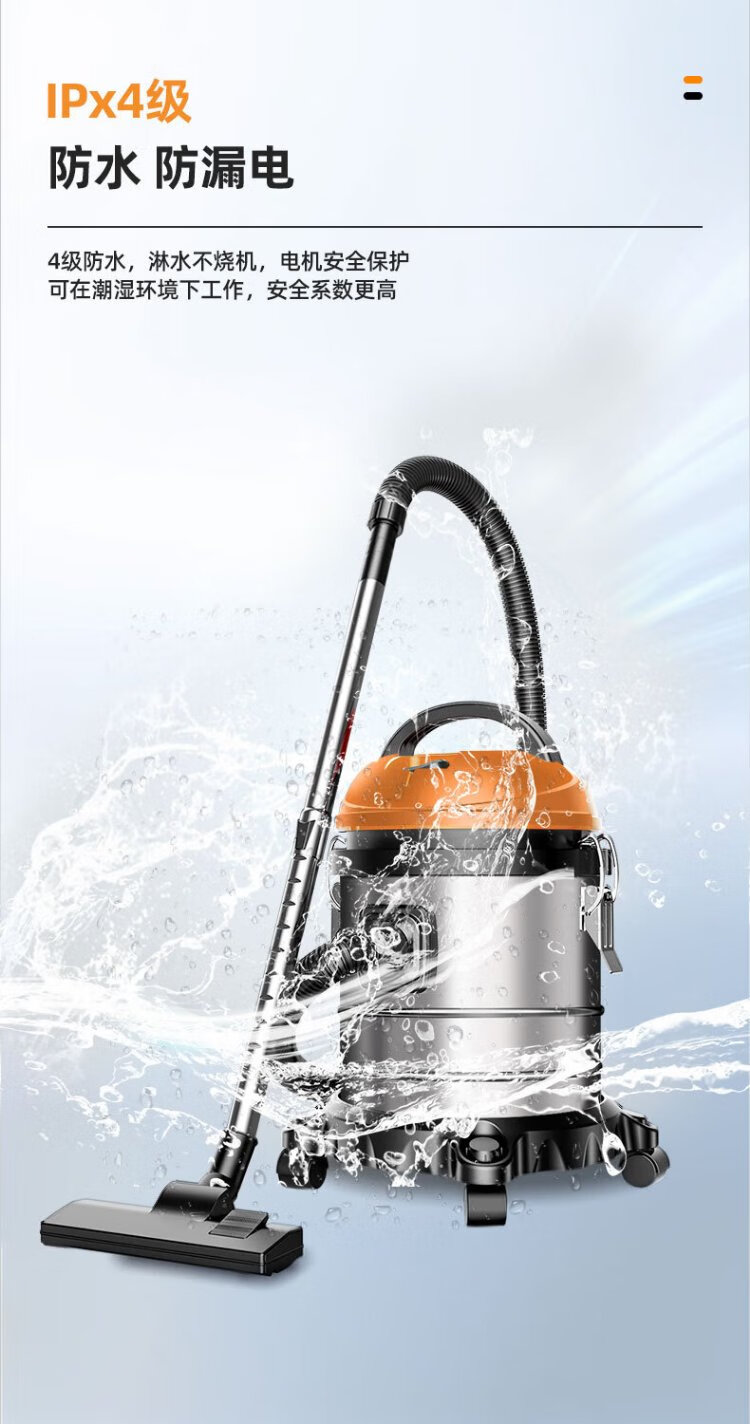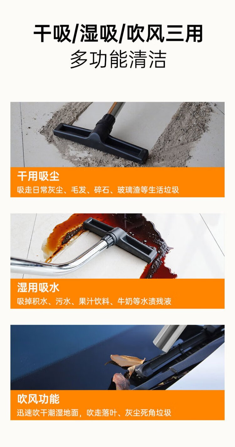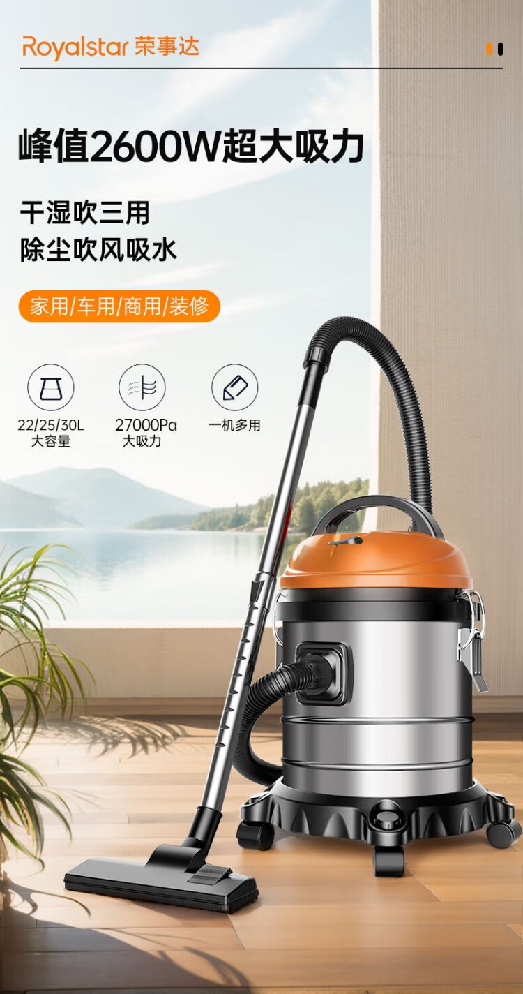 Royalstar Industrial Vacuum Cleaner Household High Suction Stainless Steel Barrel Dry and Wet Blowing Three-use 2600W High Power Carpet Hotel Powerful Water Suction Vacuum Cleaner 22L