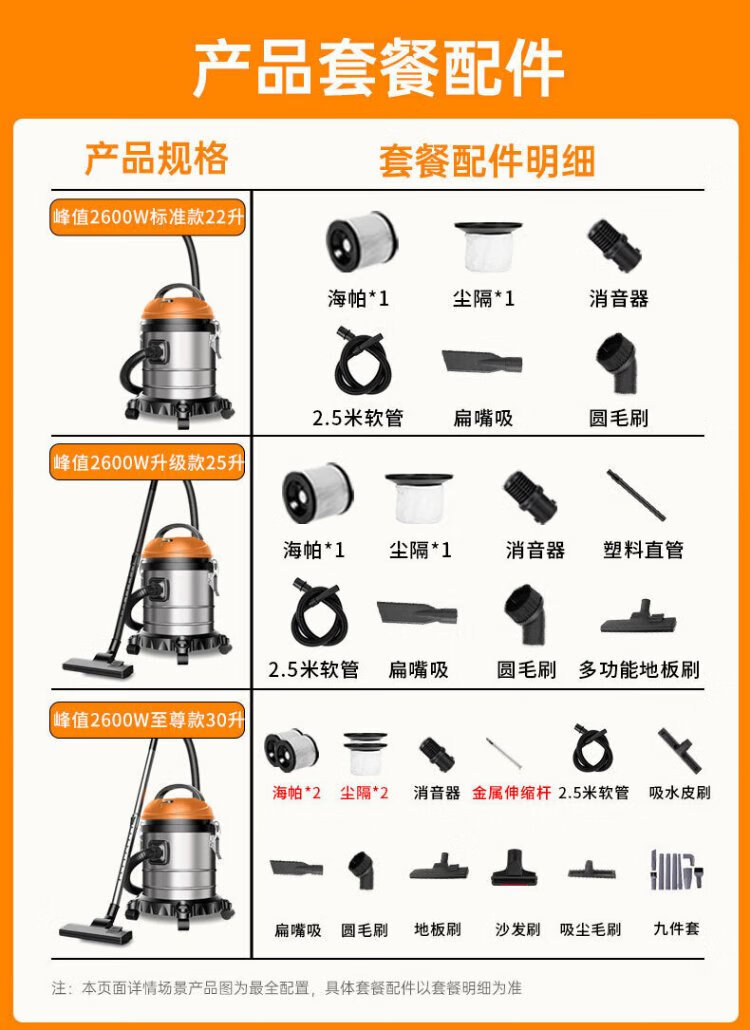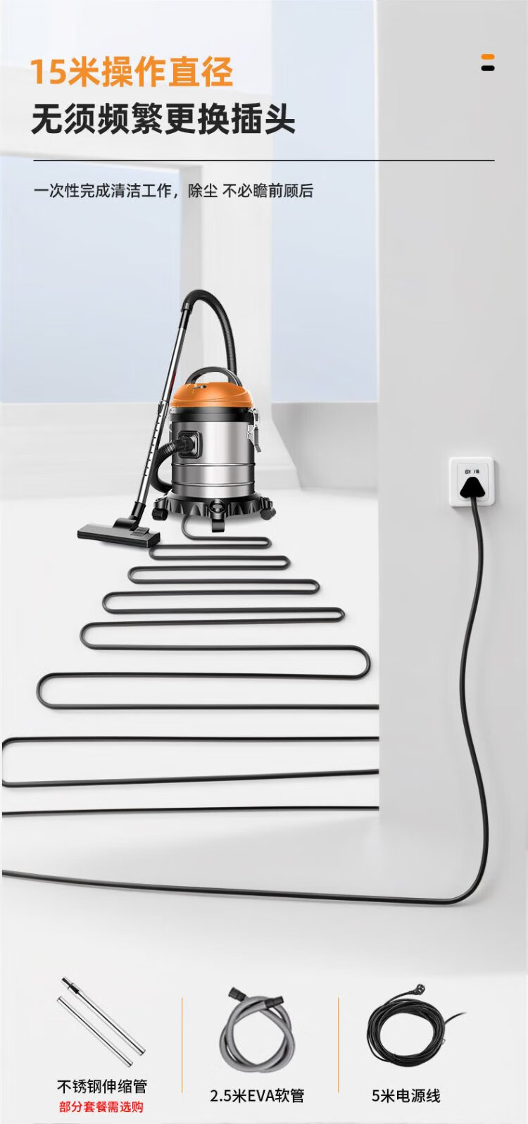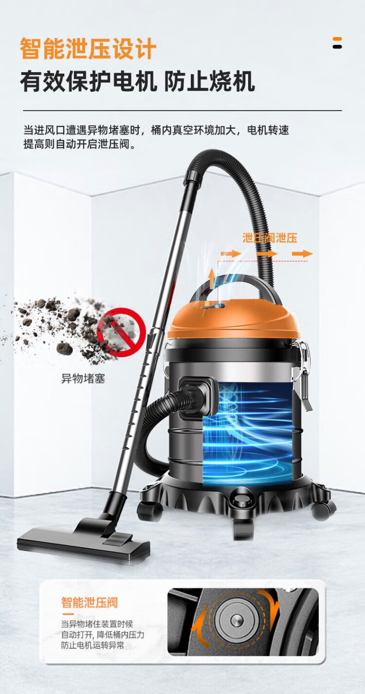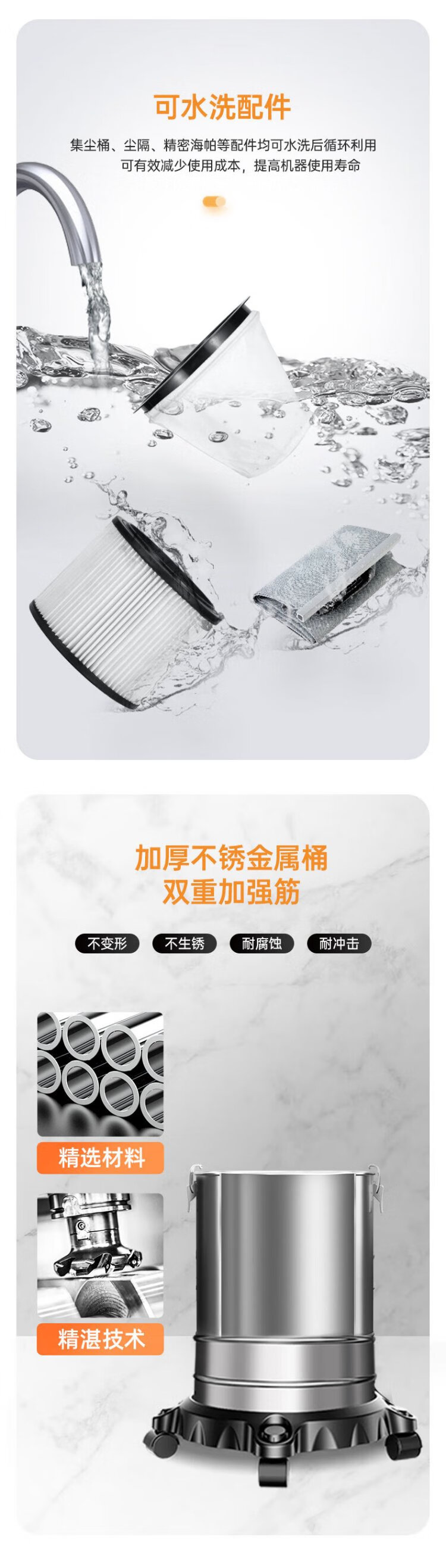 Royalstar Industrial Vacuum Cleaner Household High Suction Stainless Steel Barrel Dry and Wet Blowing Three-use 2600W High Power Carpet Hotel Powerful Water Suction Vacuum Cleaner 22L