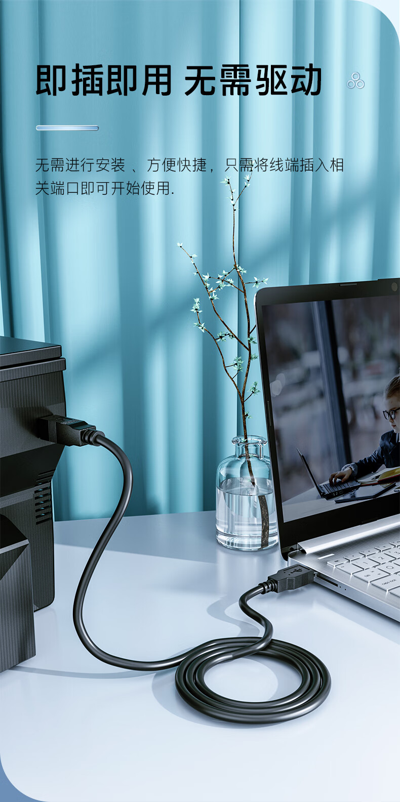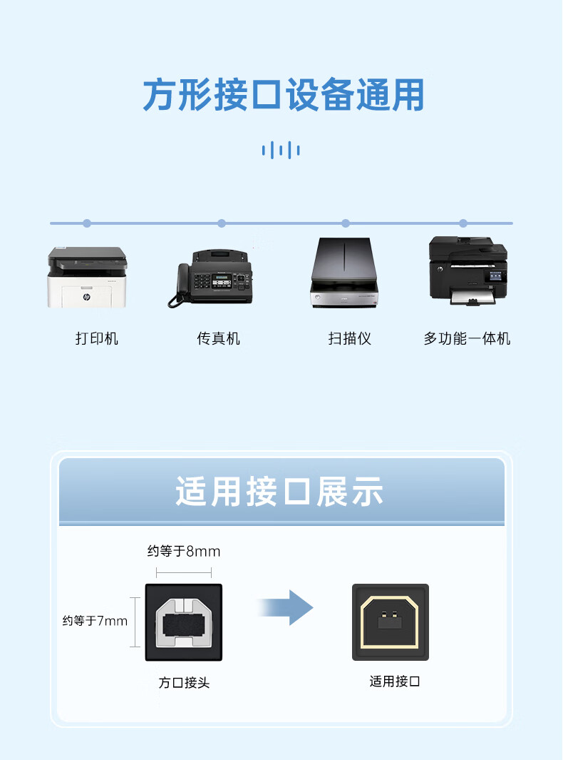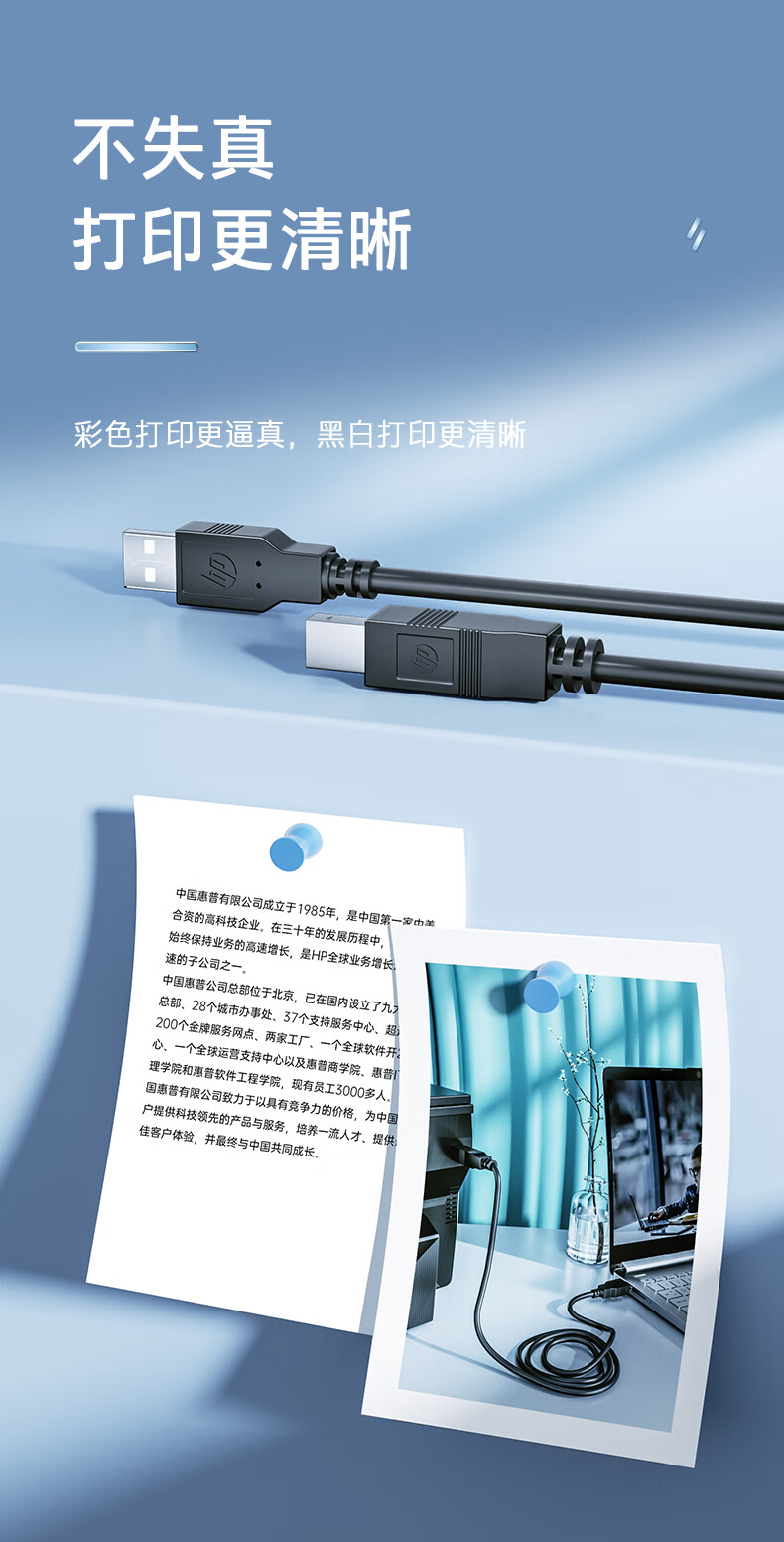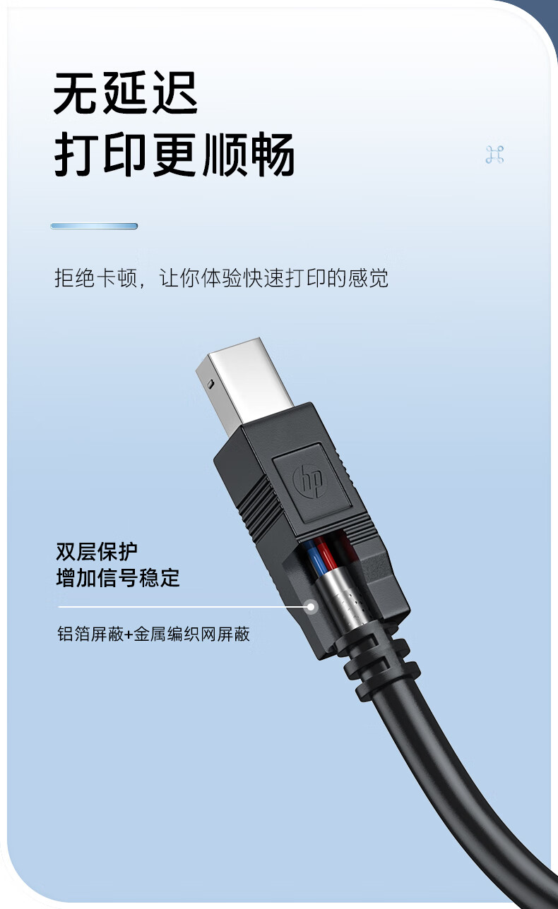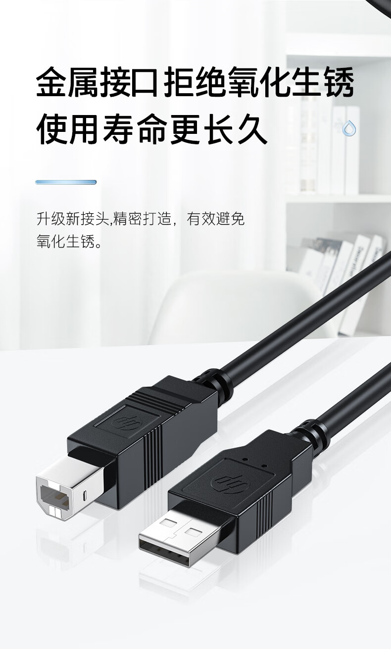 HP printer cable official original printer data connection cable square connector suitable for HP HP Canon Epson printer fax machine scanner 2 meters