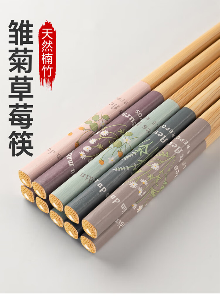 Xingfang natural bamboo chopsticks, household health, high-end, anti-slip, anti-mold, high-temperature resistant, food-grade 7mm bamboo chopsticks, 5 pairs