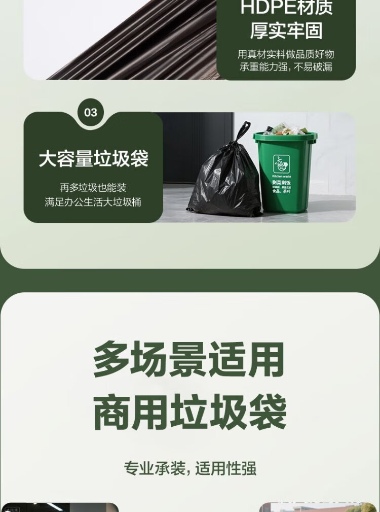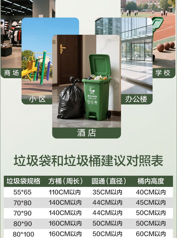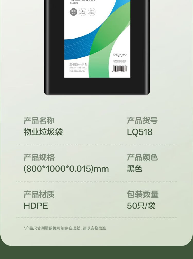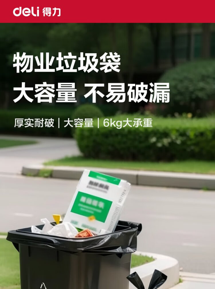 Deli's new product debut, 50 flat-mouth property garbage bags, single-sided 1.5 silk black 80*100cm extra large thickened sanitation and catering property bags 1 pack LQ518