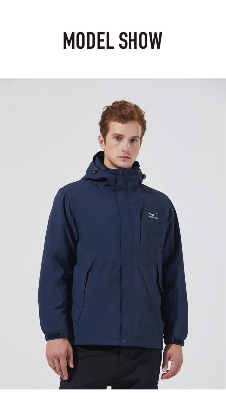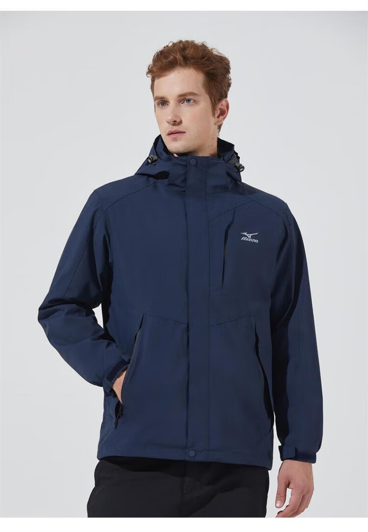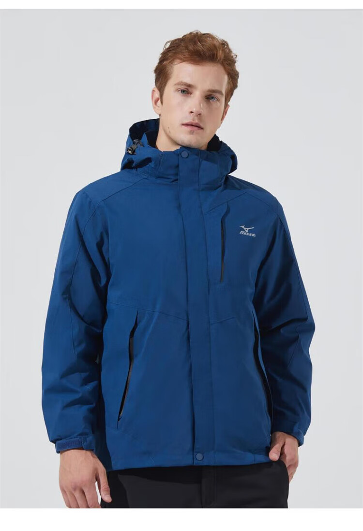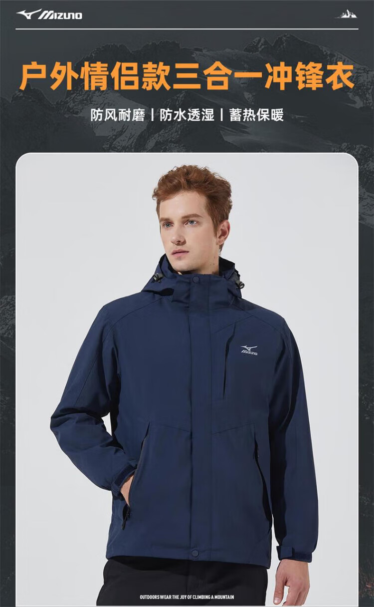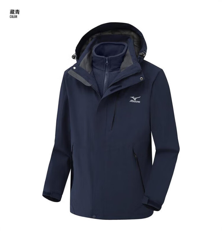 Mizuno Outdoor Three-in-One Jacket Men's Jacket Windproof Two-piece Set Couple Mountaineering Sportswear Navy XL