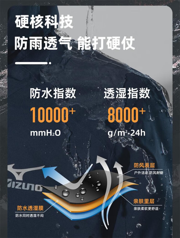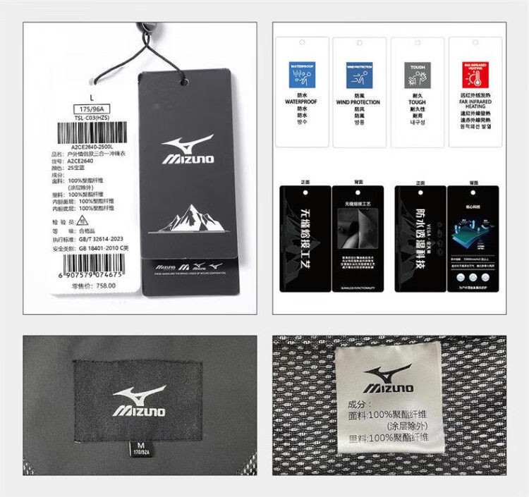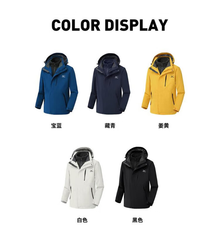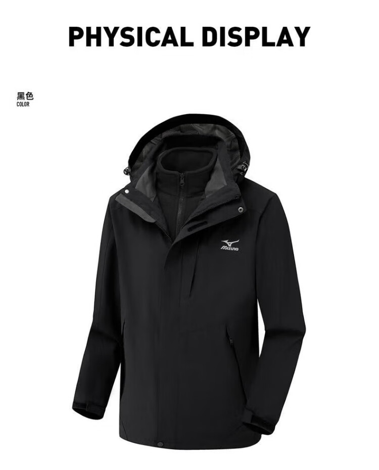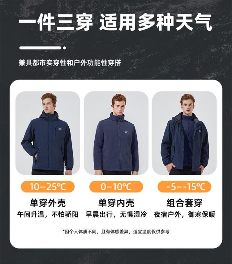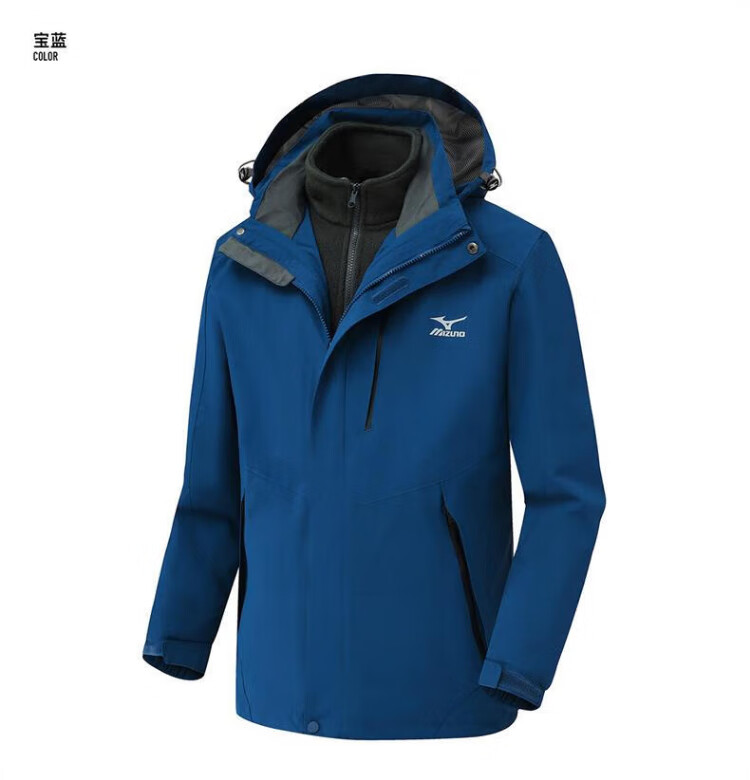 Mizuno Outdoor Three-in-One Jacket Men's Jacket Windproof Two-piece Set Couple Mountaineering Sportswear Navy XL