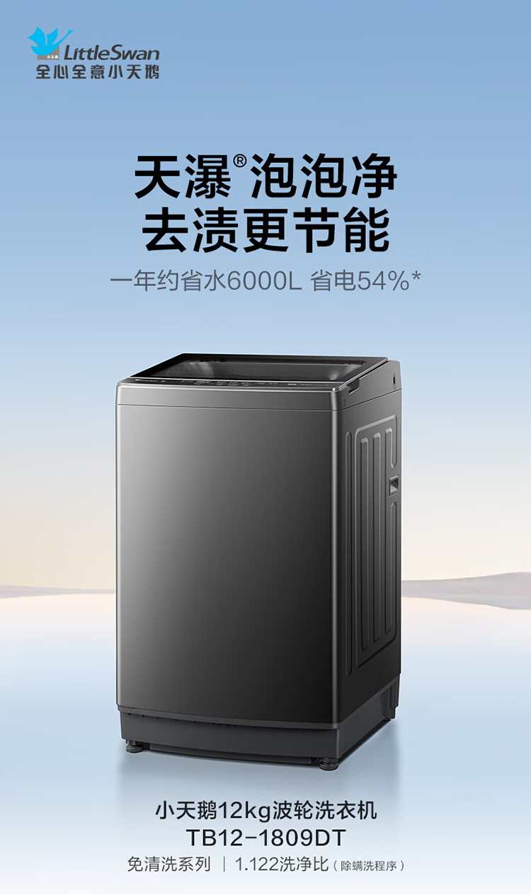 LittleSwan pulsator washing machine fully automatic home 12KG large capacity direct drive frequency conversion TB12-1809DT old-for-new state subsidy JD.com self-operated first-level energy efficiency