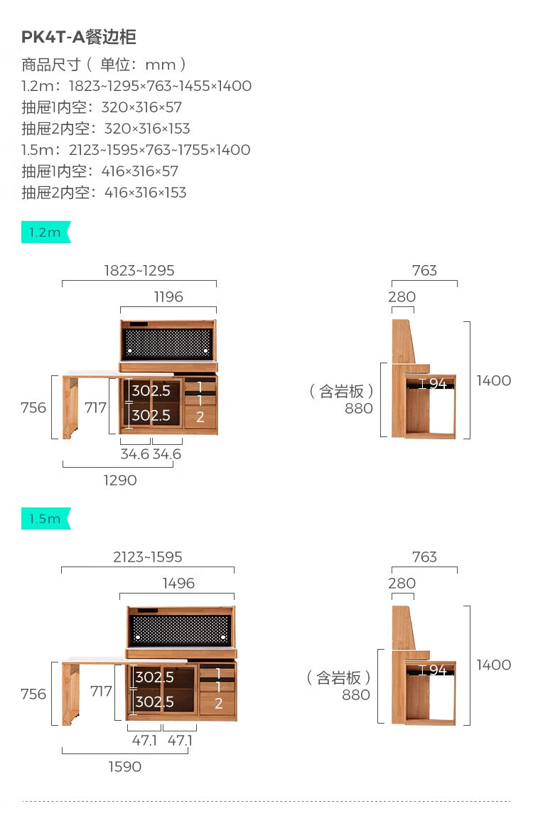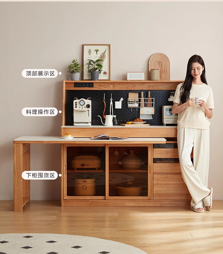Lin's home sideboard dining table integrated solid wood cabinet storage cabinet against the wall small apartment Nordic style 2025 new PK4T-A