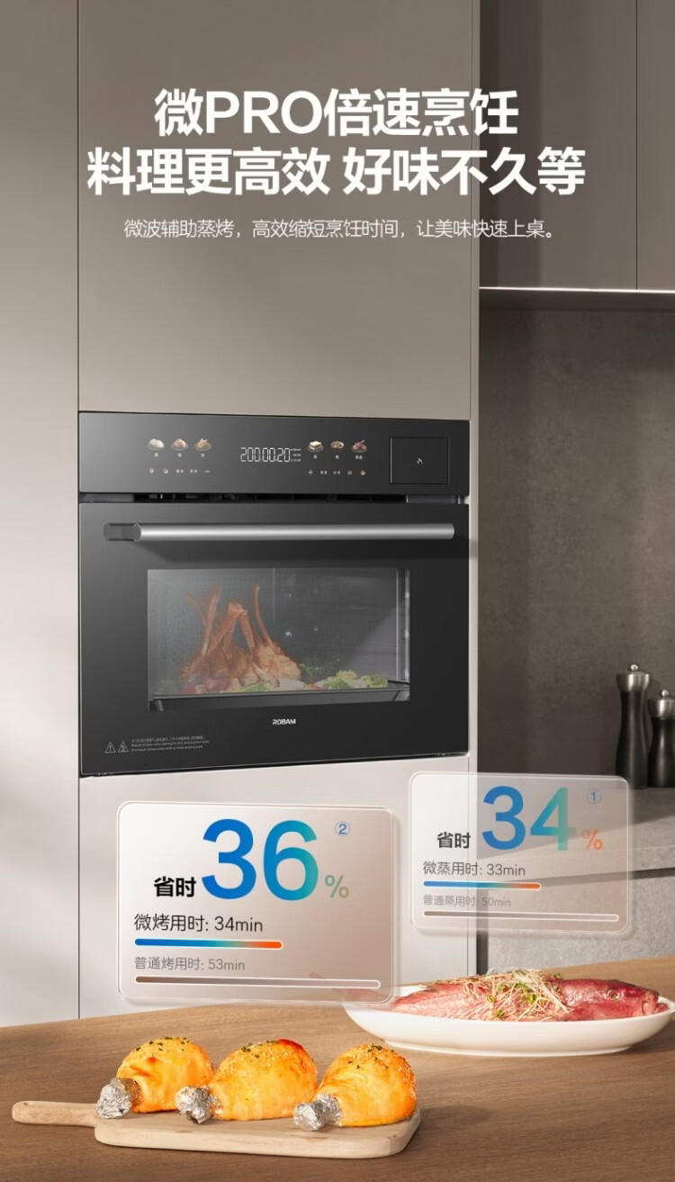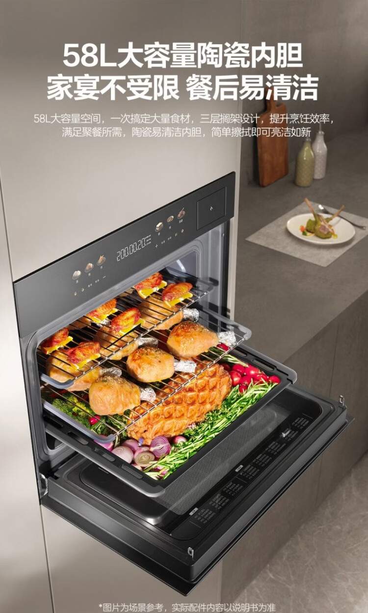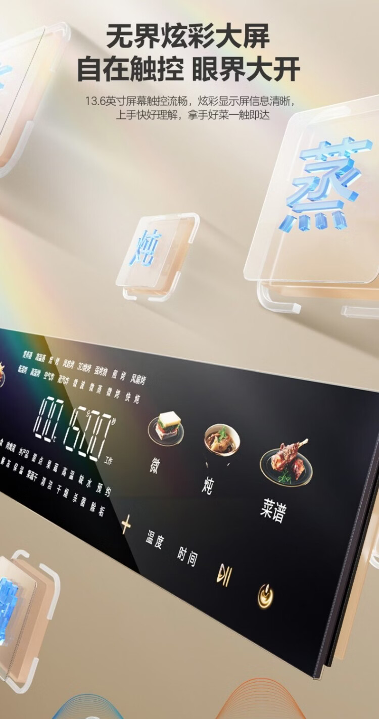 Robam Flash Cooking Bagel D2 micro-steaming, roasting, frying, stewing, steaming and roasting all-in-one machine embedded 13.6-inch colorful screen 58L microwave oven C9MA-D2