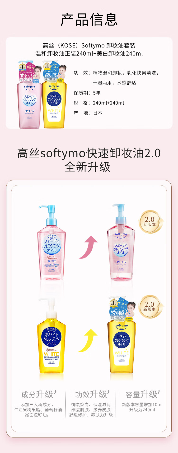 Kose Cleansing Oil 480ml (Pink + Yellow) Mild Wet and Dry Makeup Remover Gift for Men and Women