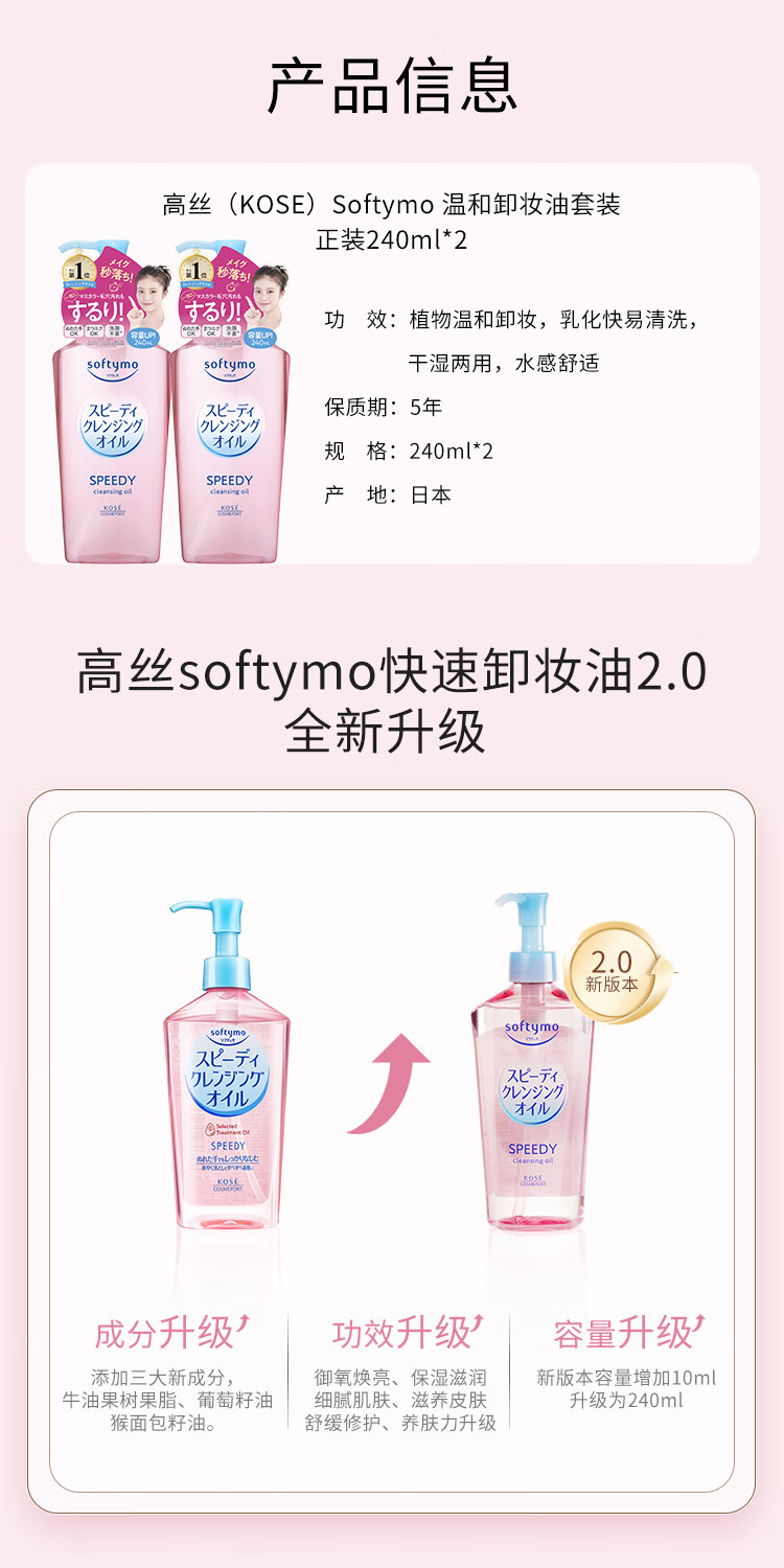 Kose Cleansing Oil 240ml Pink*2 Upgraded Wet and Dry Makeup Remover Sensitive Skin Gift for Men and Women