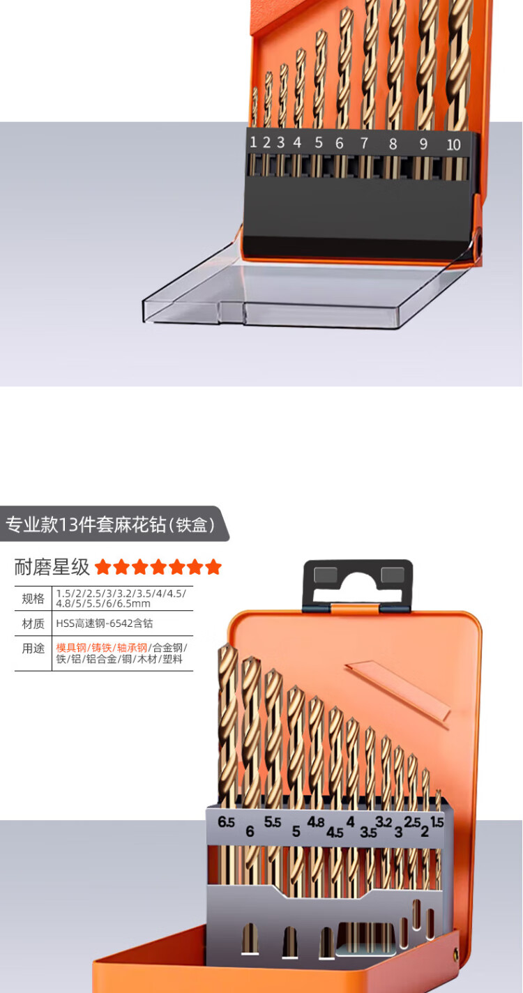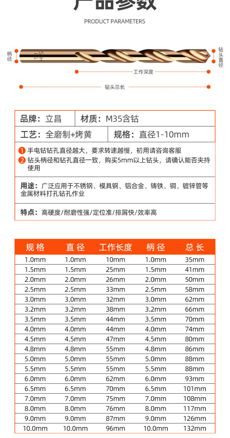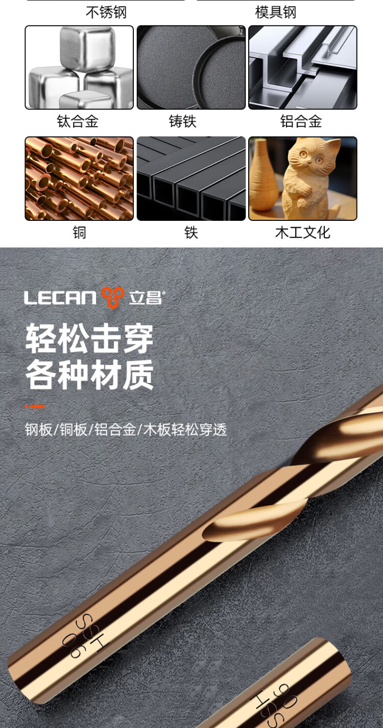 Lichang twist drill bit cobalt-containing stainless steel special extended hand electric drill to punch iron plate and wood board reaming drill twist drill set
