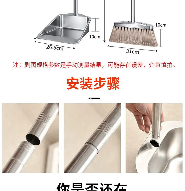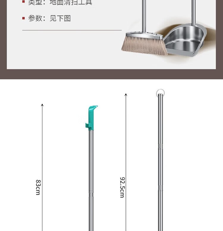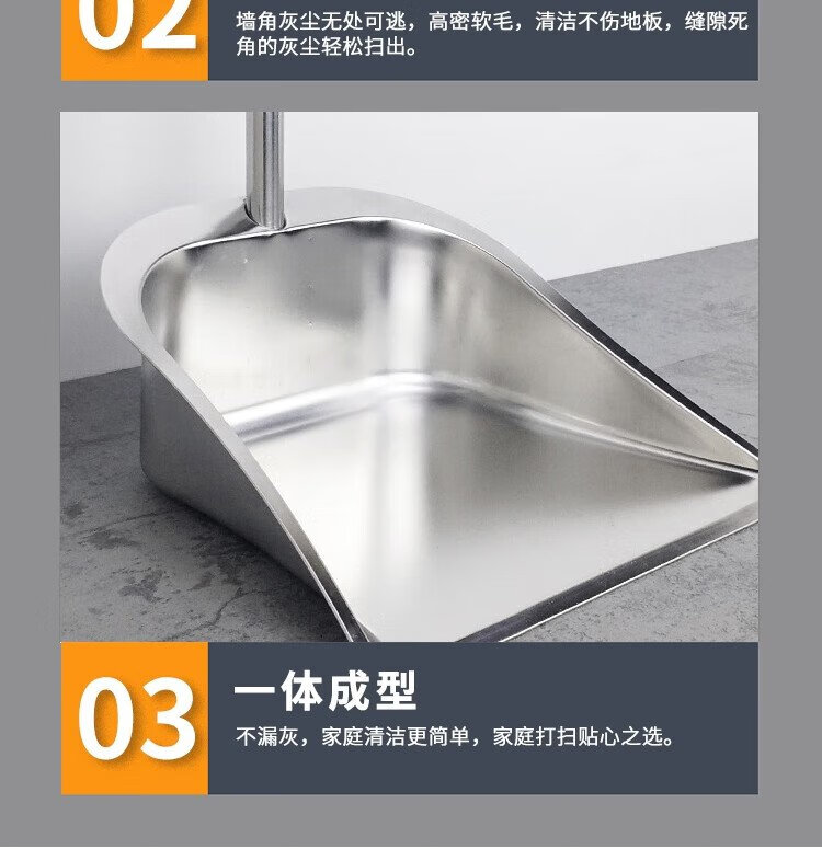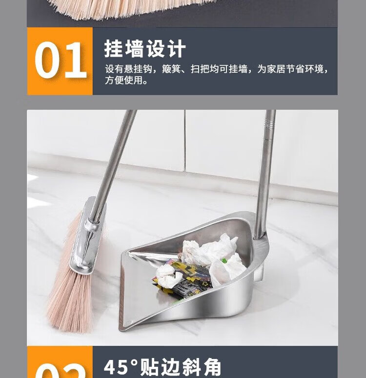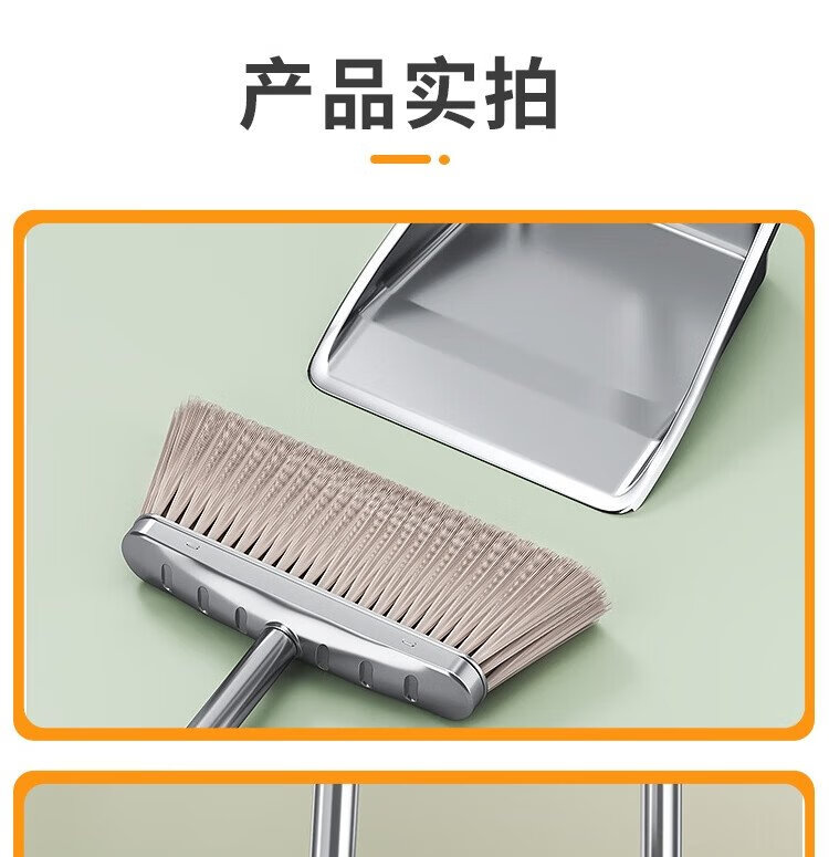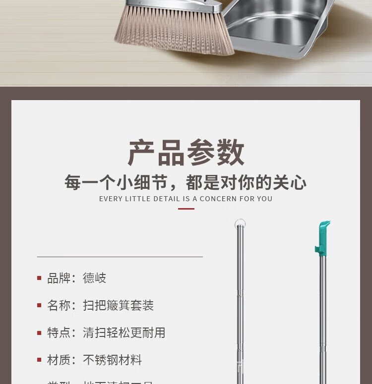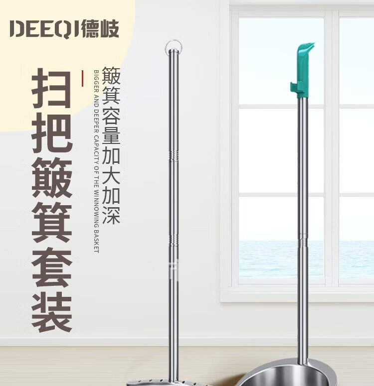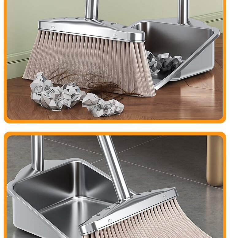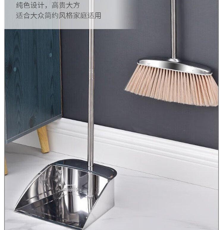 Deqi broom and dustpan set, stainless steel garbage shovel, enlarged dustpan and broom combination set, thickened dustpan + broom