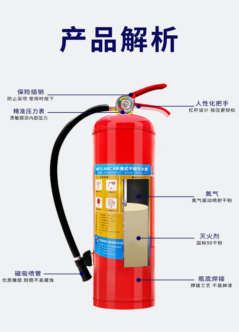 Fuldun 2025 new national standard dry powder fire extinguisher 4kg portable household commercial 4KG national fire certification
