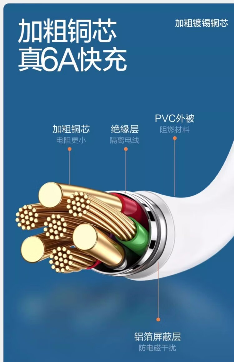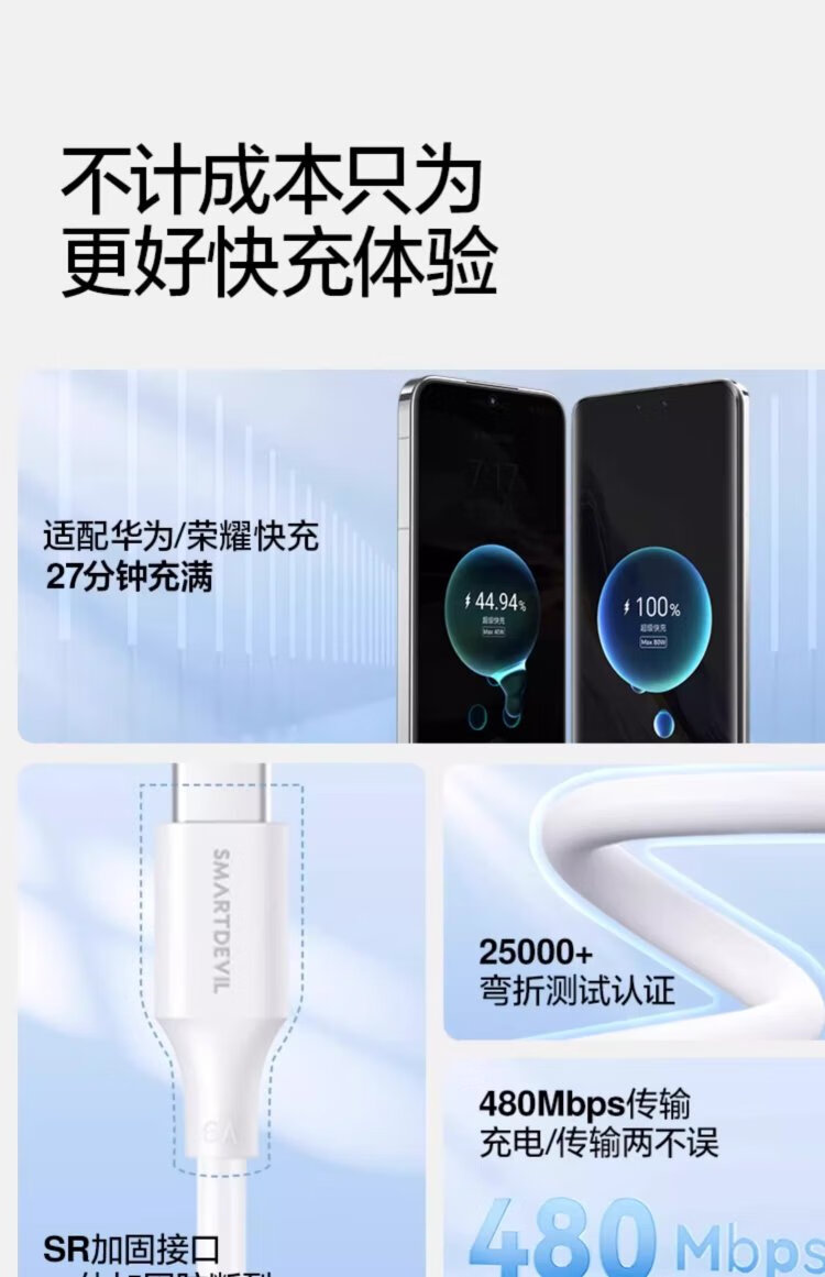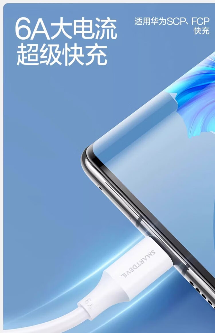 Flash Magic Type-C data cable 6A is suitable for Huawei Honor super fast charging 100W/88W/66W charging cable Mate70/60Pro/Pura80 Xiaomi Android mobile phone and tablet