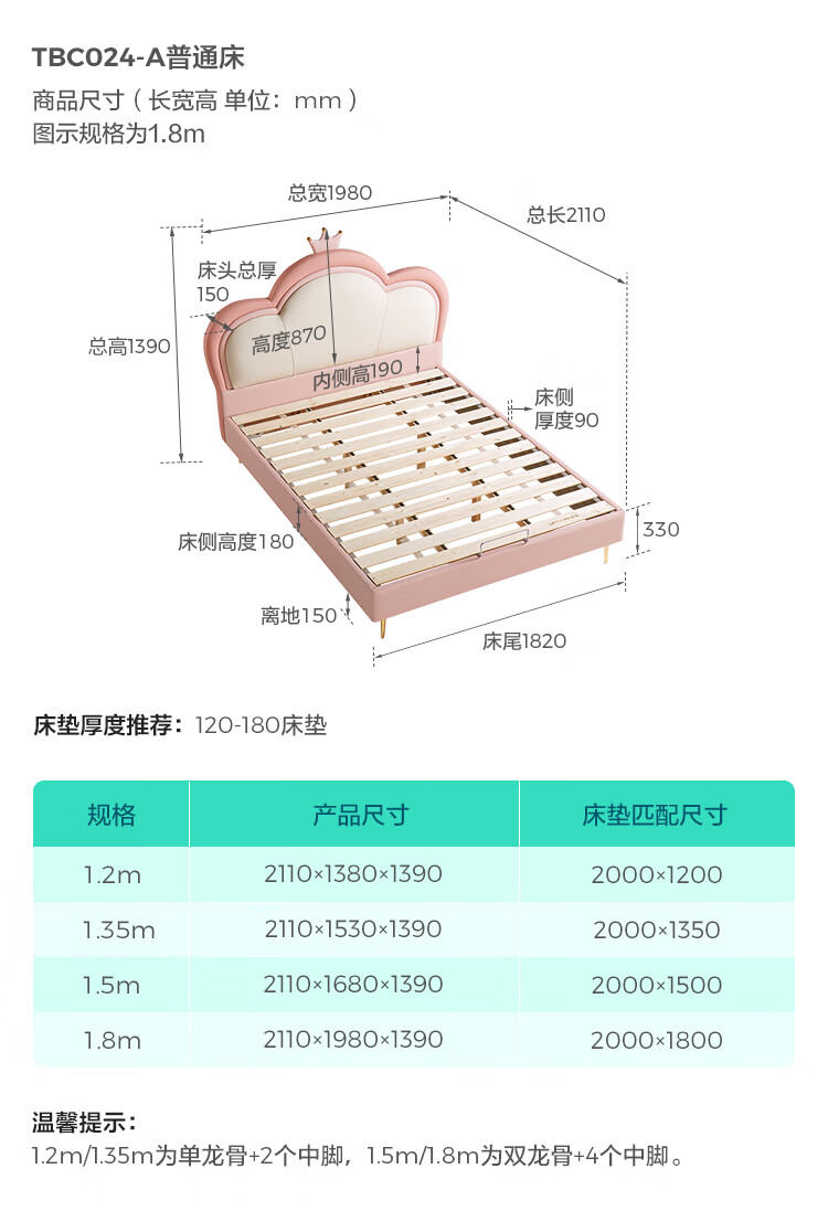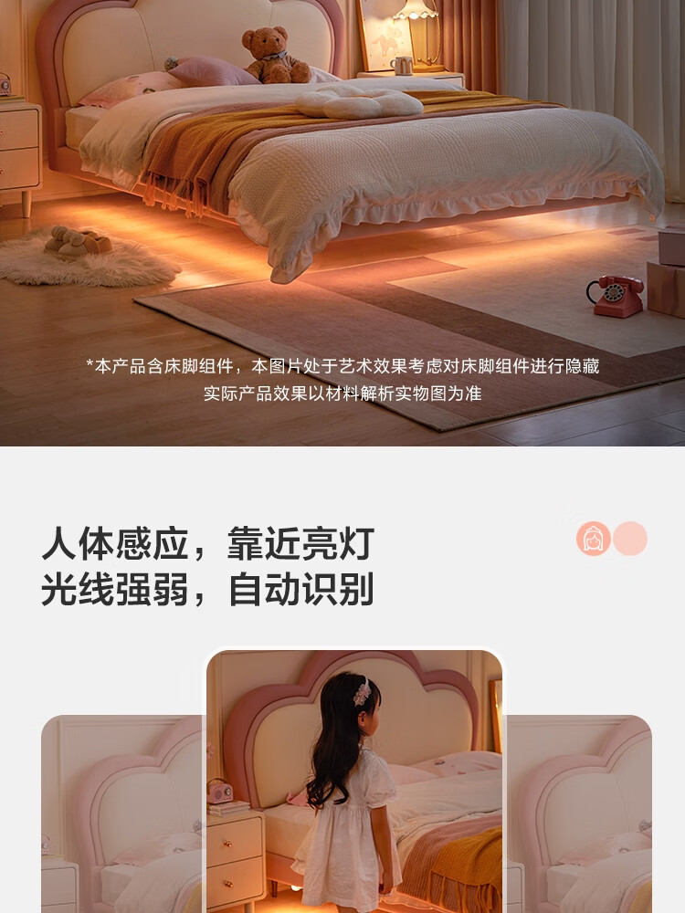 LINSY KIDS Lin's children's bed girl's cloud princess bed single bed princess bed + bedside table * 1 + mattress 1.8 * 2m