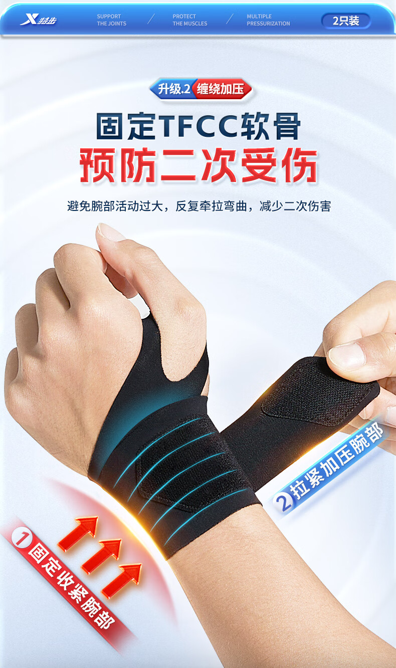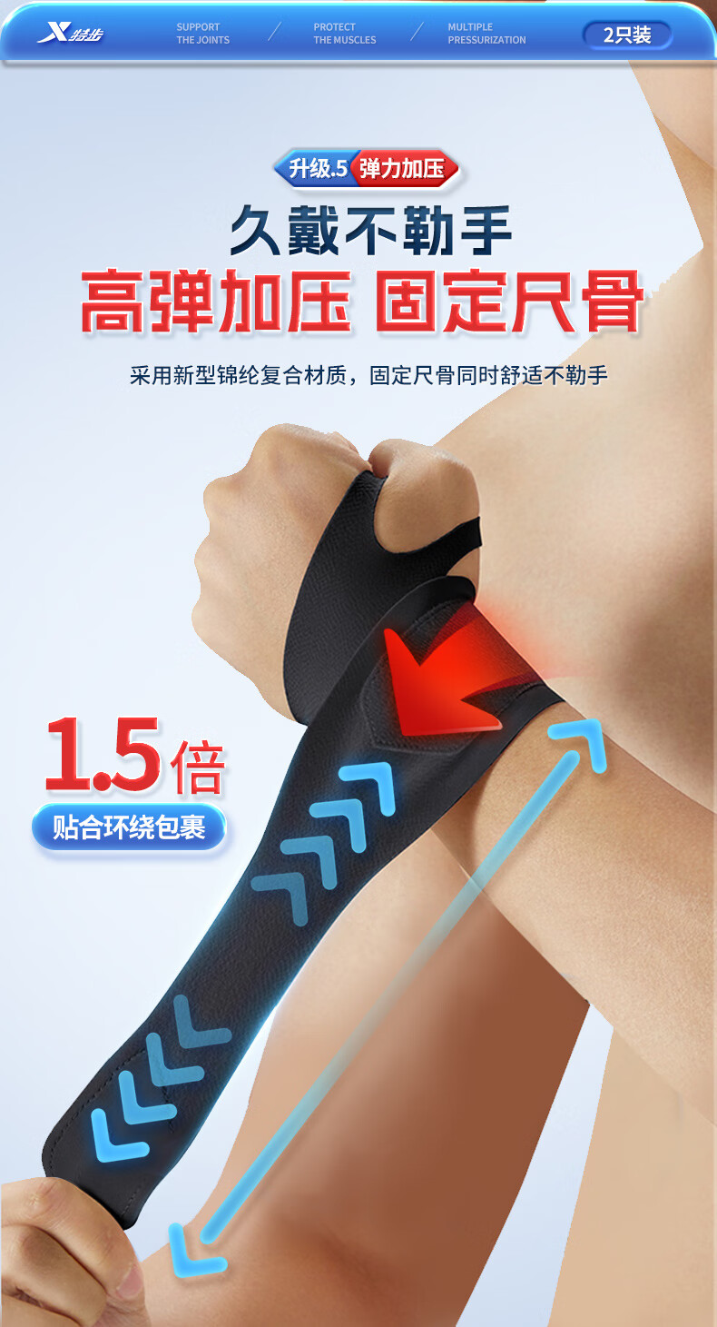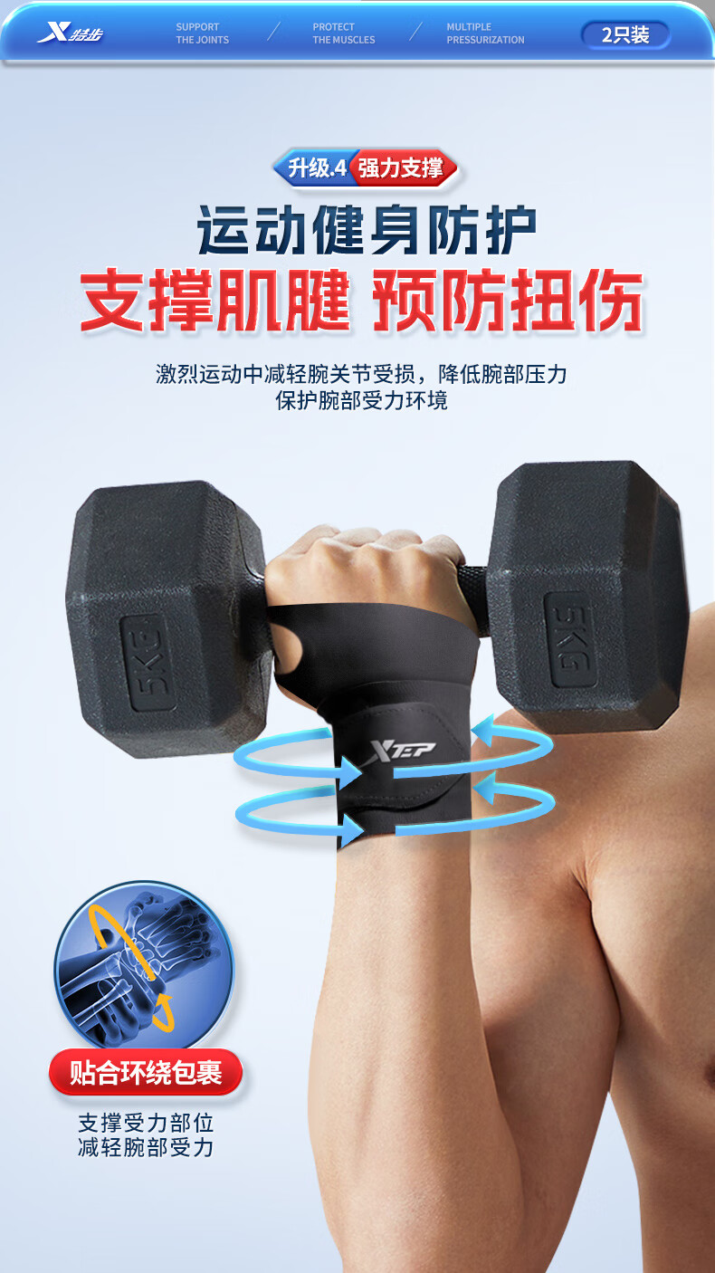 XTEP wrist brace fitness tenosynovitis tfcc wrist brace bench press badminton tennis basketball anti-sprain pressurized single pack