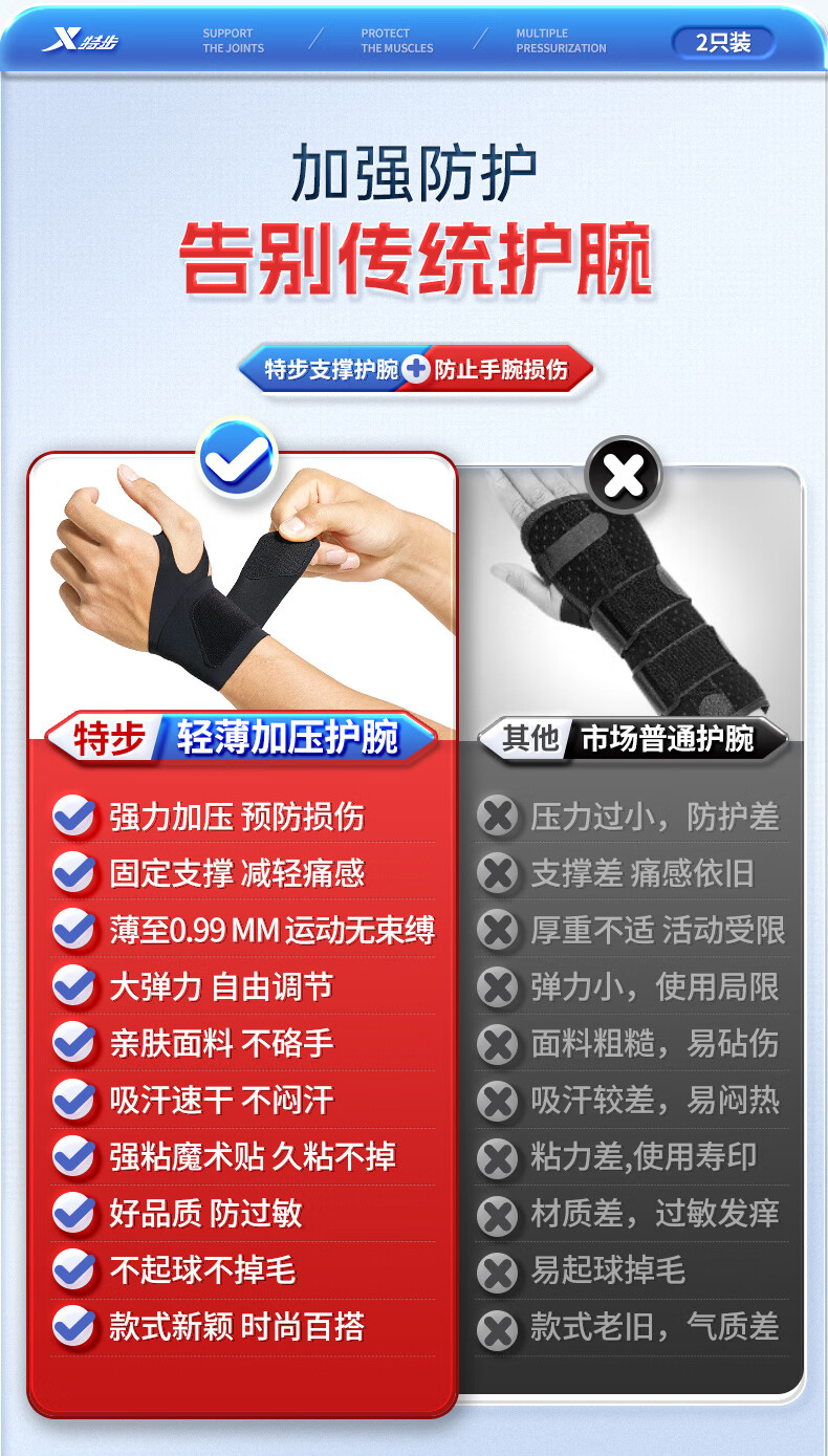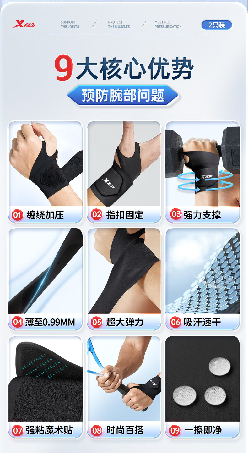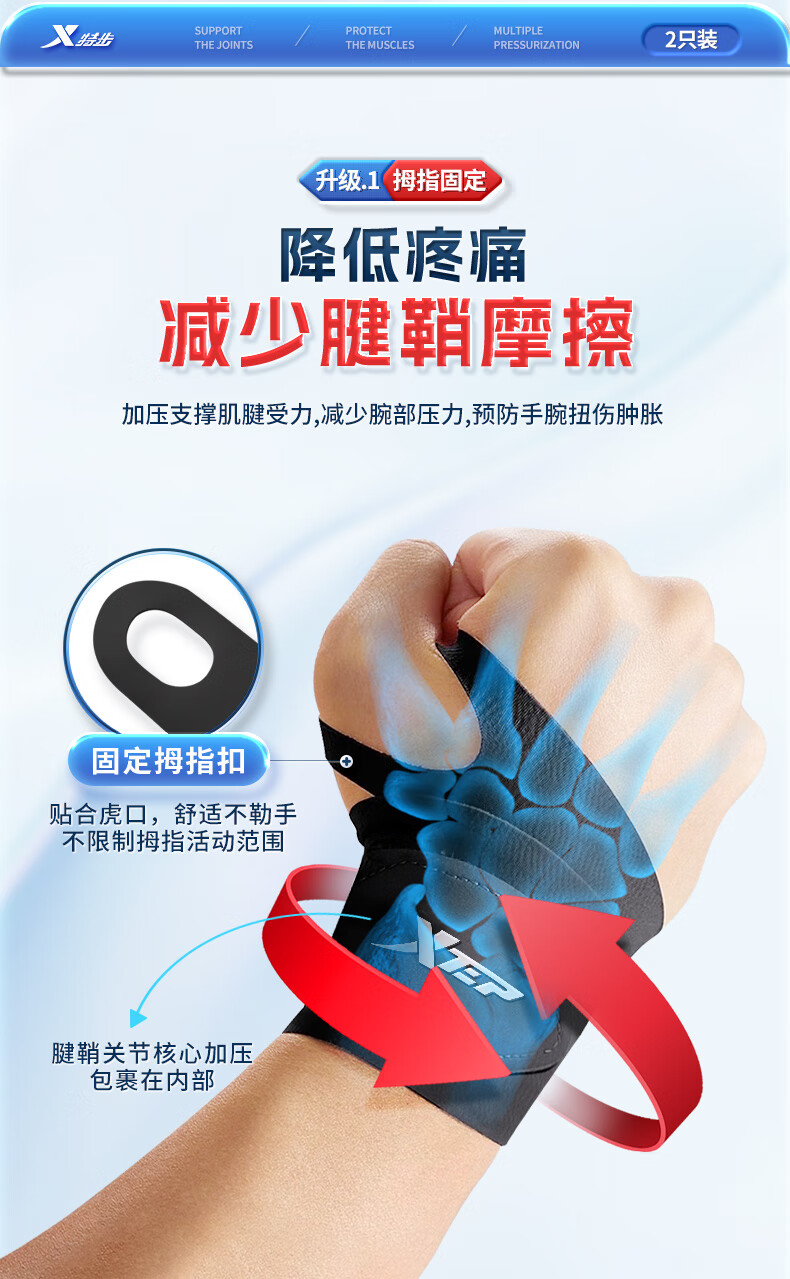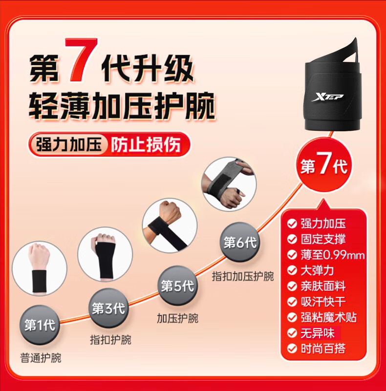XTEP wrist brace fitness tenosynovitis tfcc wrist brace bench press badminton tennis basketball anti-sprain pressurized single pack