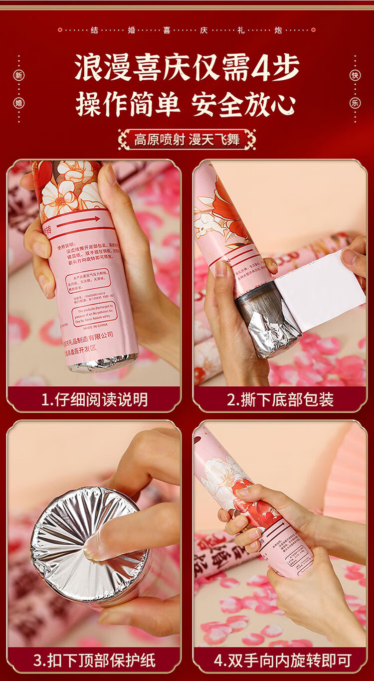 Qingwei Wedding Cannon Flower Container Plus Volume Petal Rain Concierge Flower Pink 2 Pieces 60# Wedding Supplies Wedding Room Decoration