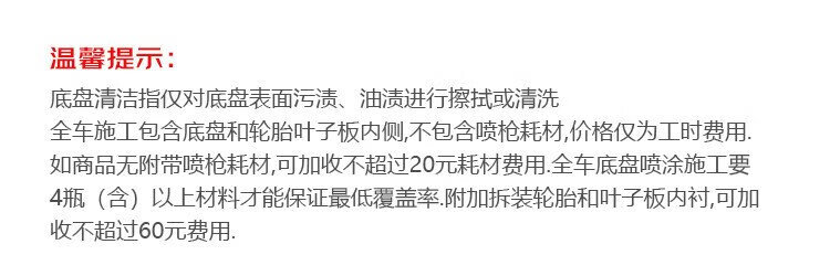 Jingdong car maintenance and chassis armor service includes chassis cleaning, chassis and tire construction fee only (6-7 bottles)
