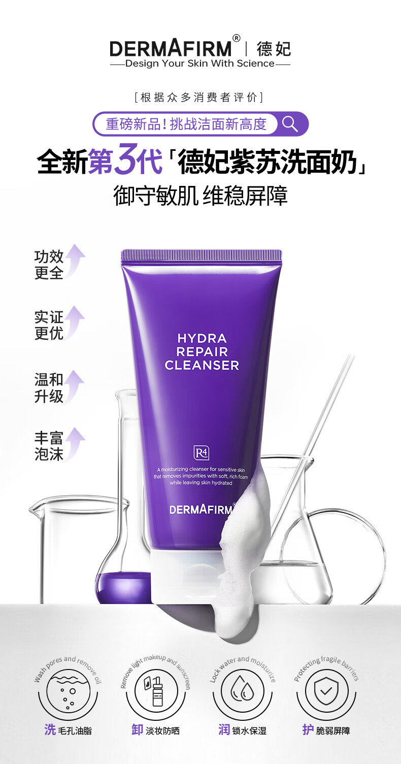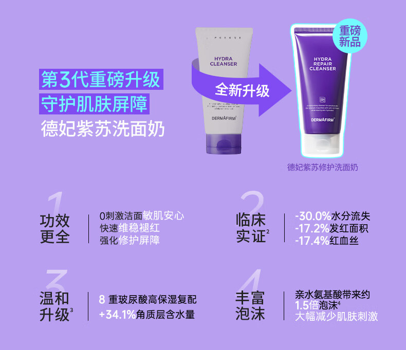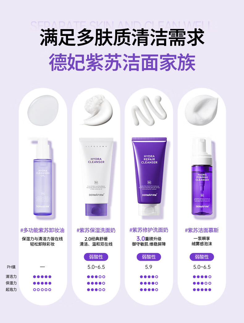 DERMAFIRM Moisturizing Cleanser Perilla Purple 10g Amino Acid Soothing Cleanser Sensitive Skin 3.0 Repair Barrier New Upgrade
