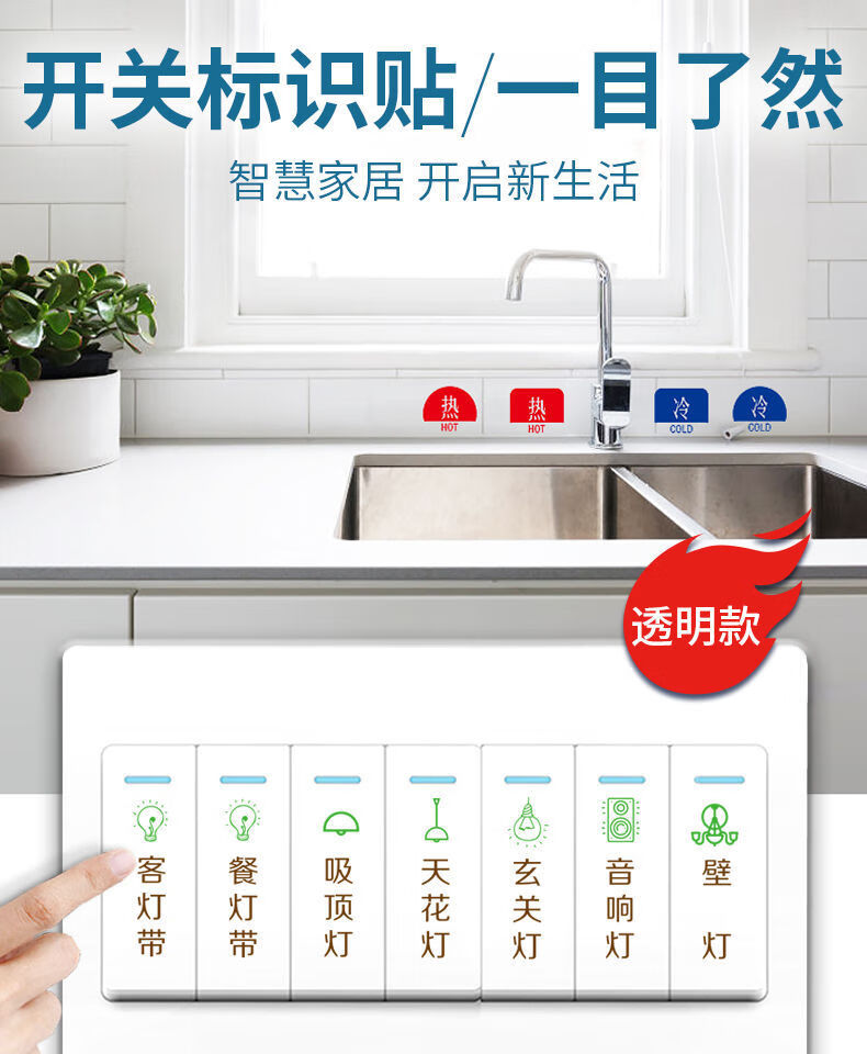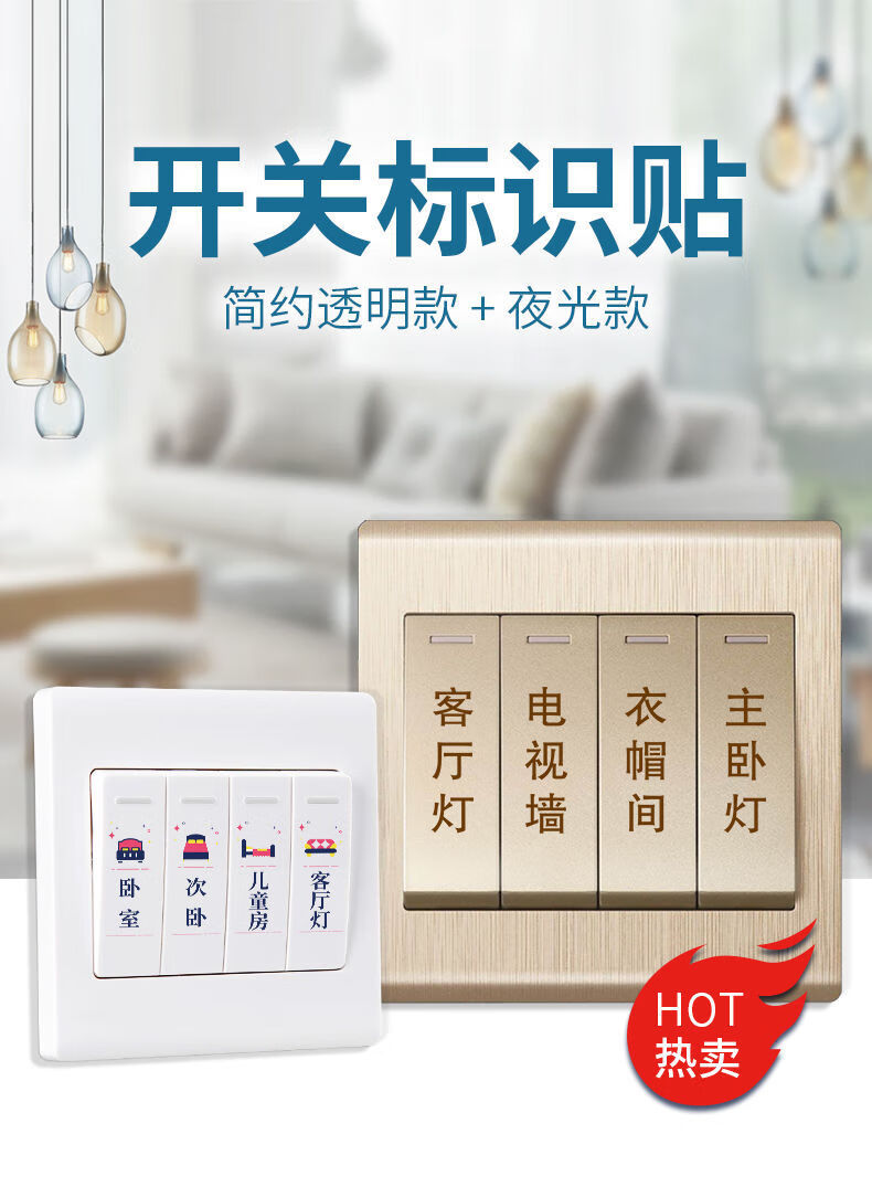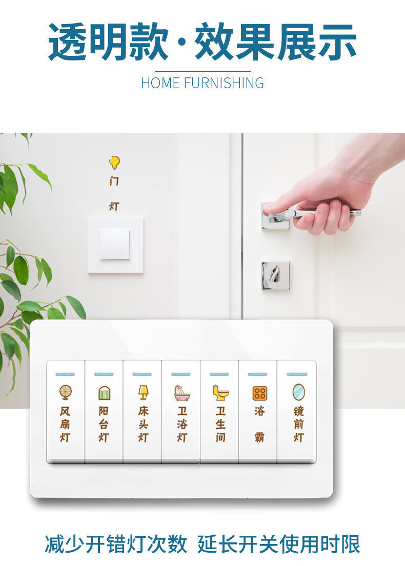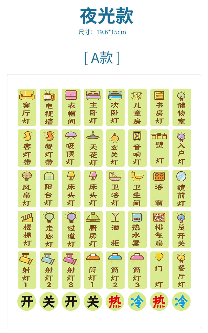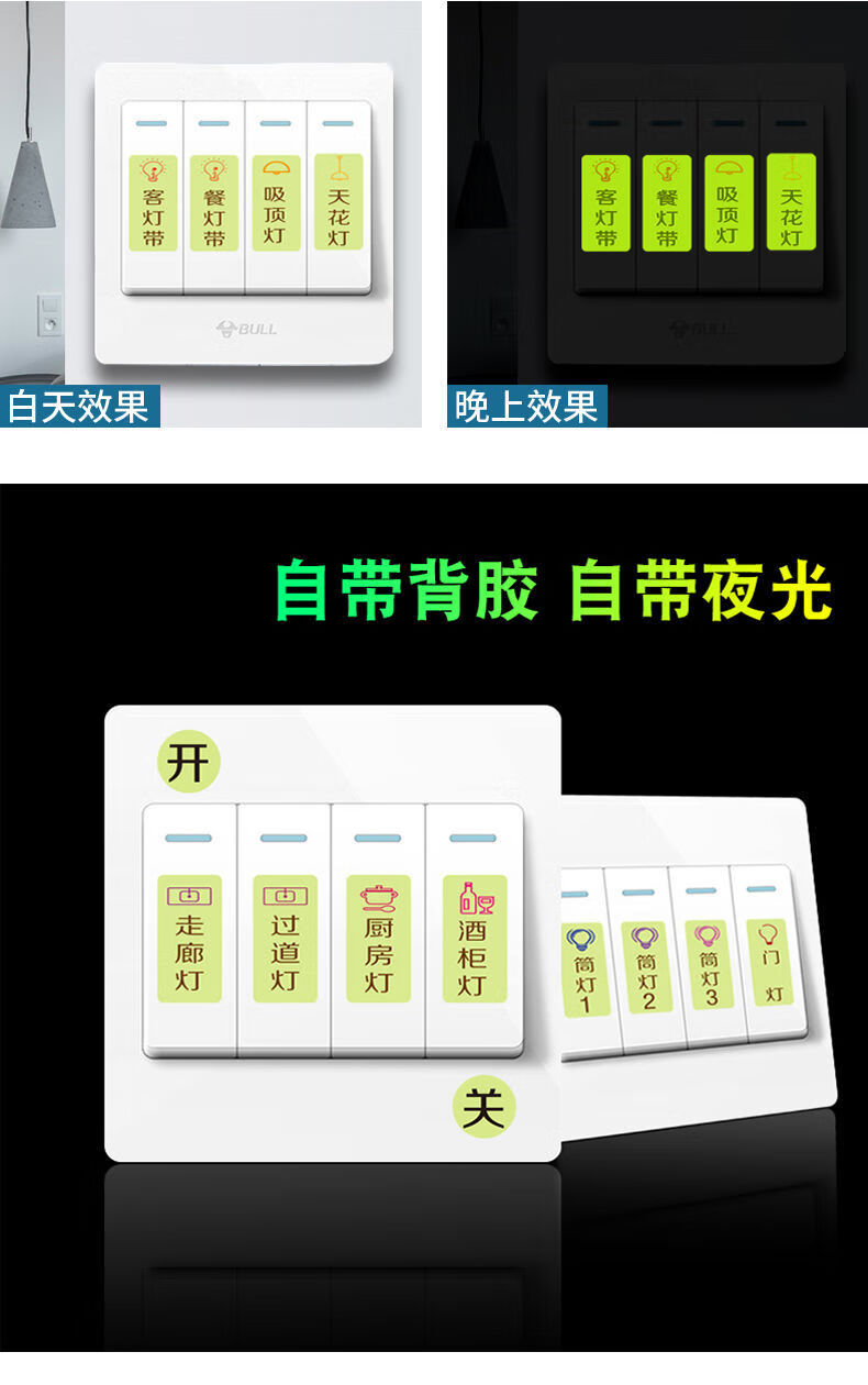 Moufu (CNMF) Jingcang Suda switch identification stickers, luminous identification stickers, distribution box label stickers, socket indication stickers (luminous type A, 2 sheets)