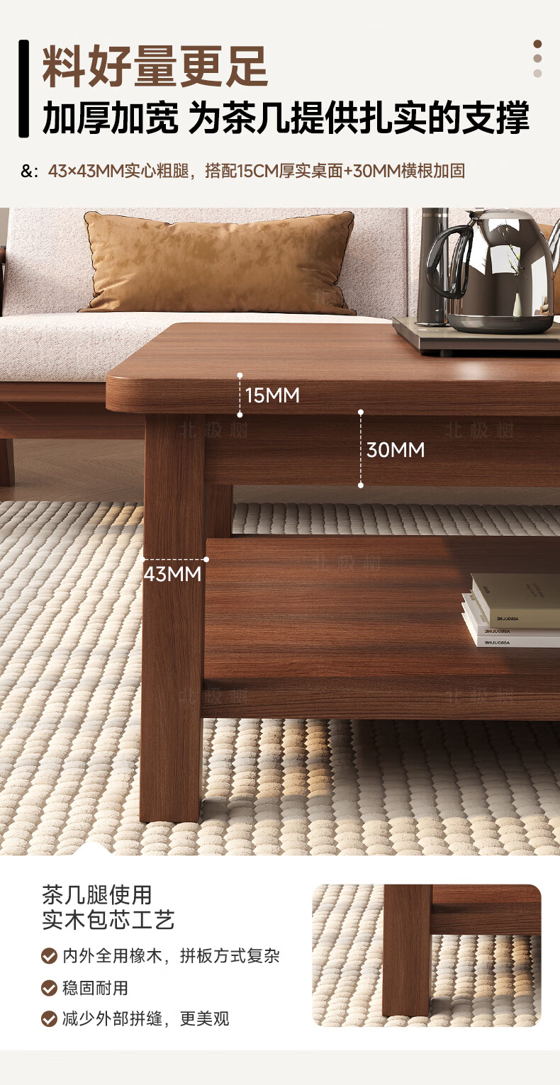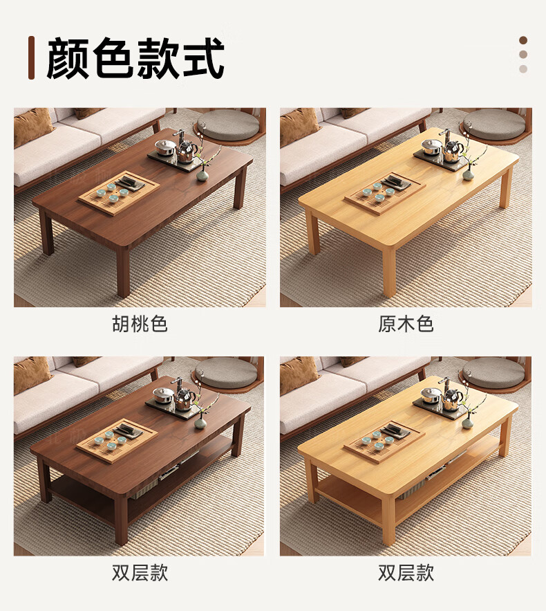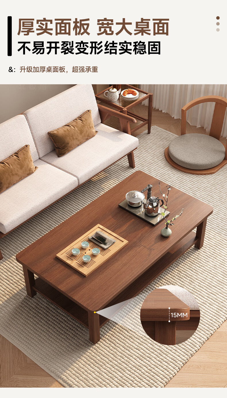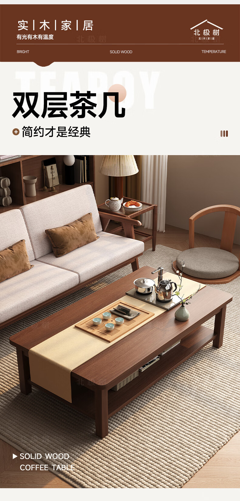 Arctic tree coffee table living room home small apartment solid wood legs office new Chinese style modern simple tea table walnut color double 120