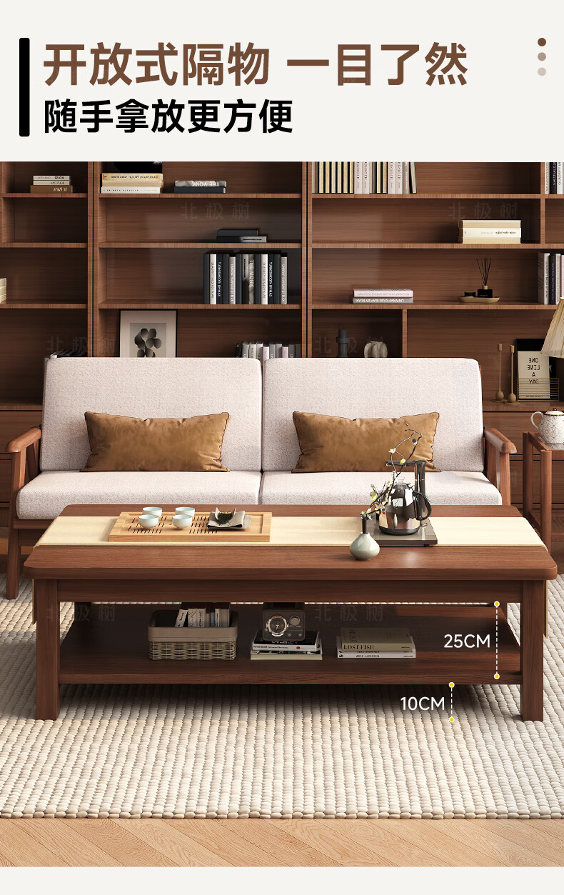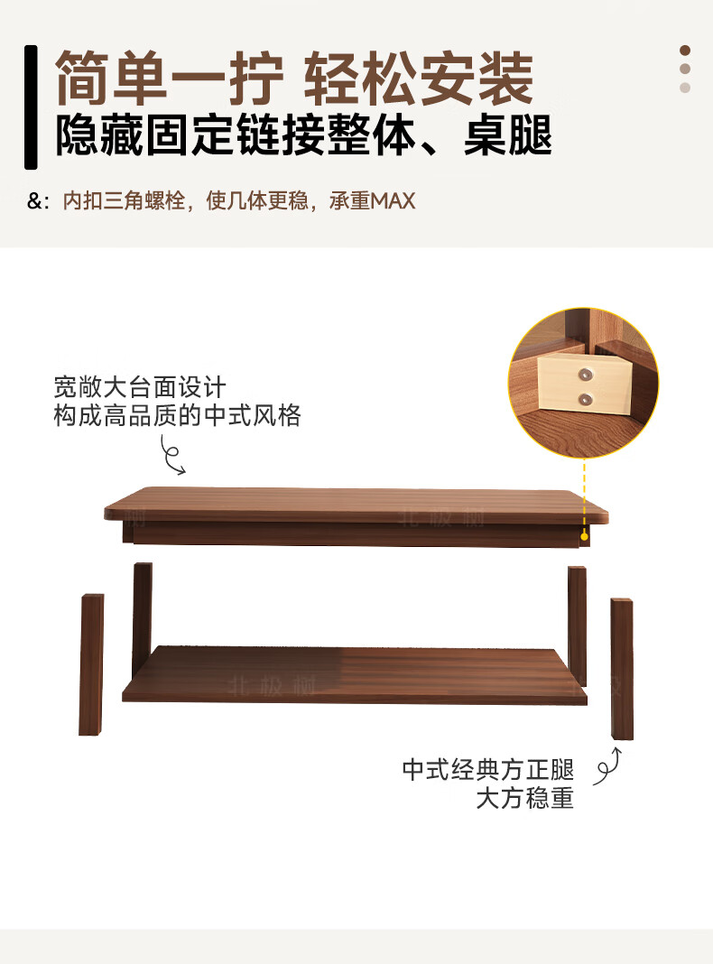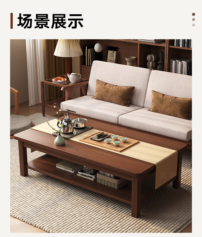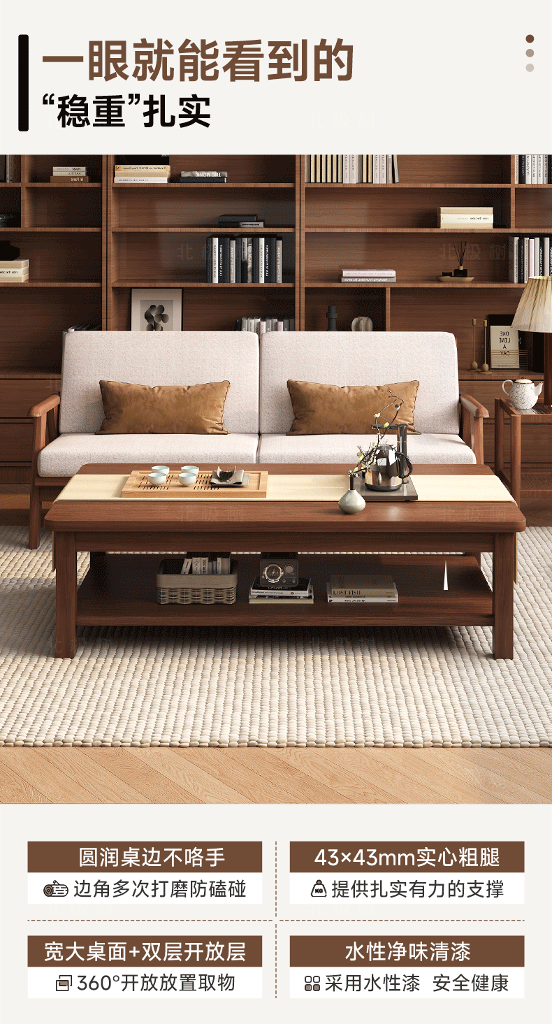 Arctic tree coffee table living room home small apartment solid wood legs office new Chinese style modern simple tea table walnut color double 120