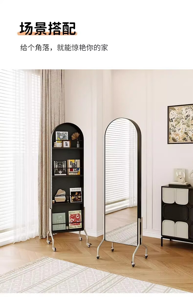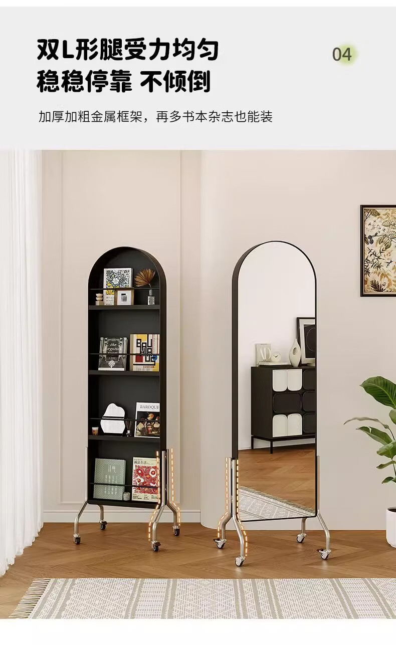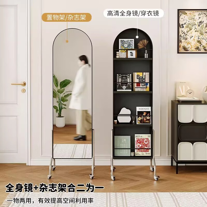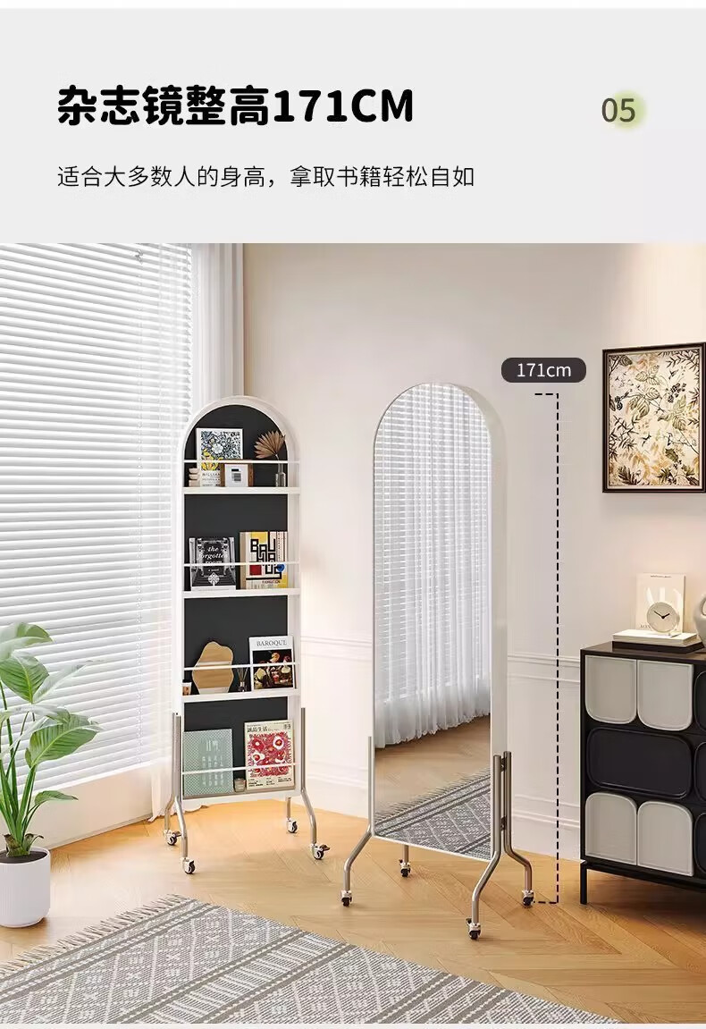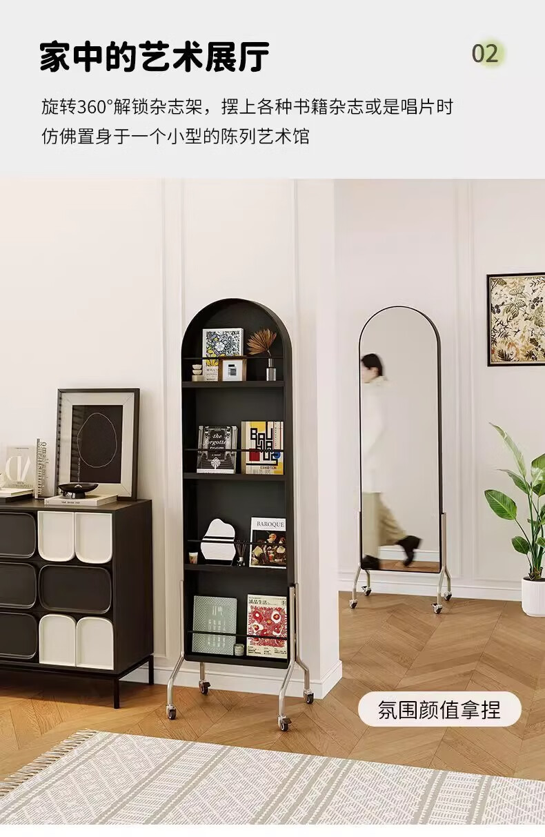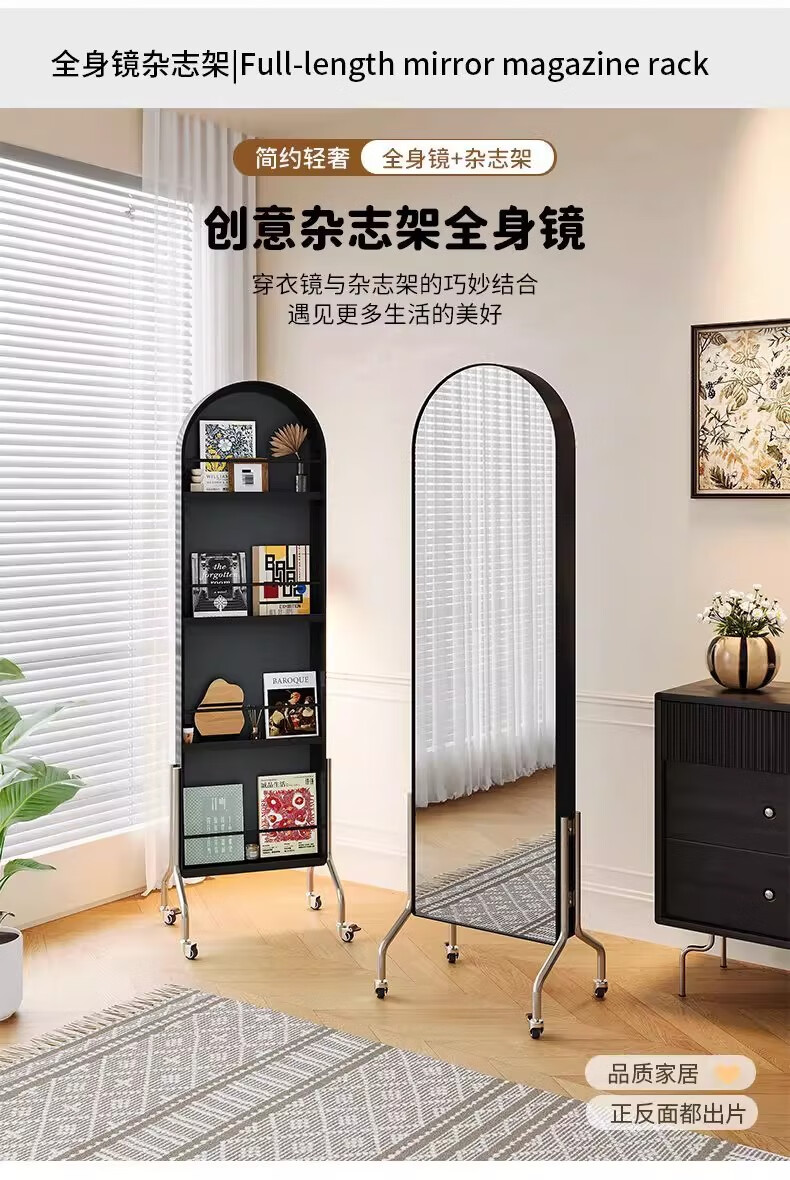 Millennium Washington Removable Mirror Full-length Mirror Ancient Style Storage Magazine Rack Floor-standing Book and Newspaper Storage Rack Rotating Dressing Mirror Black