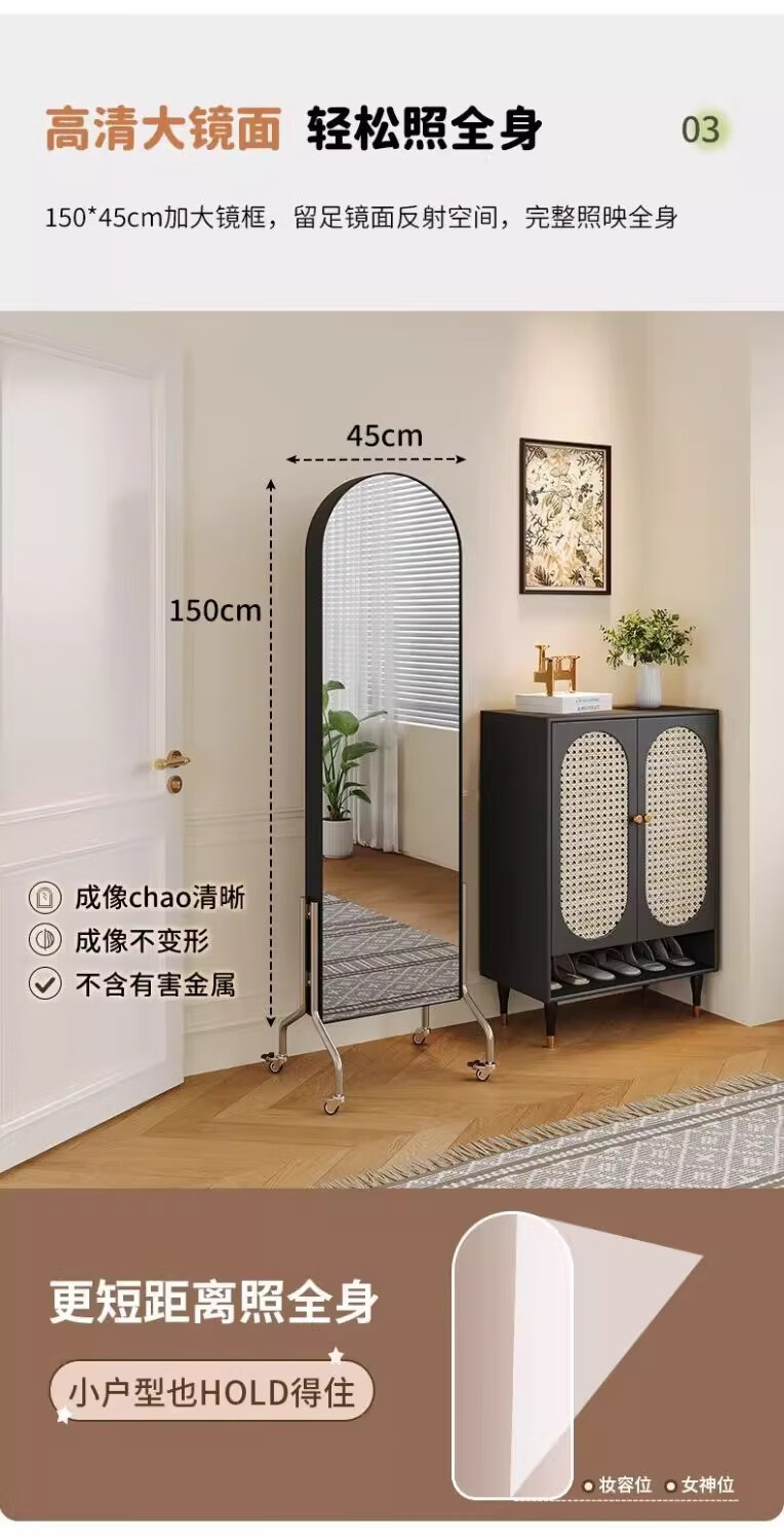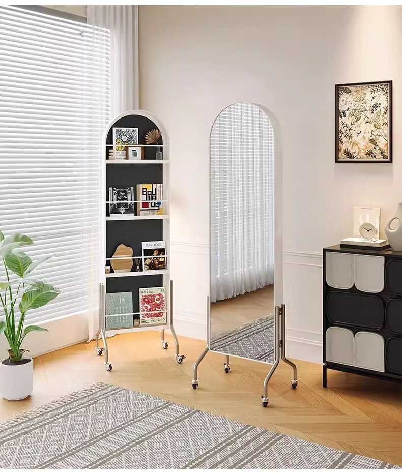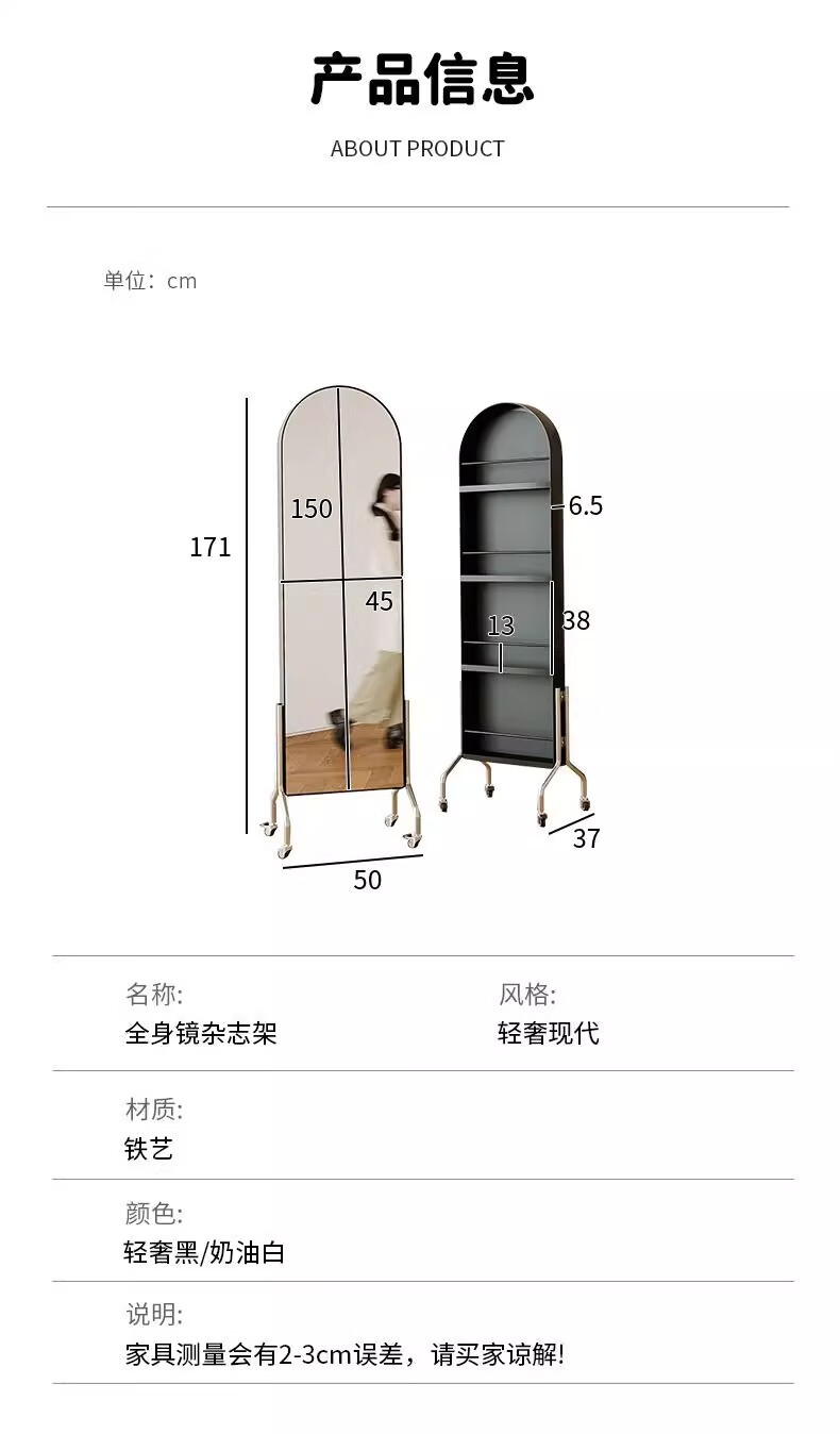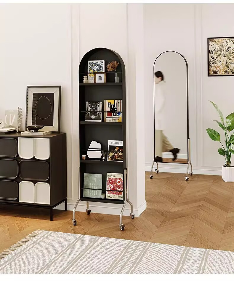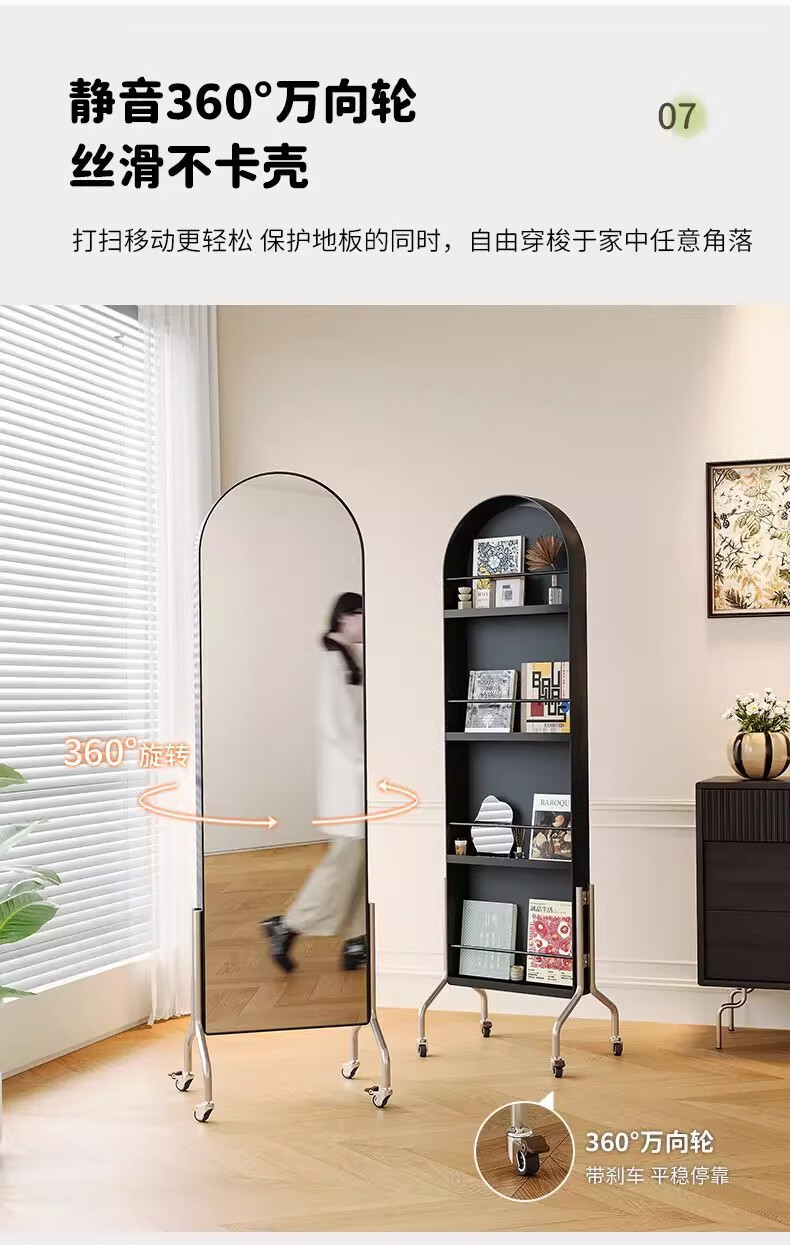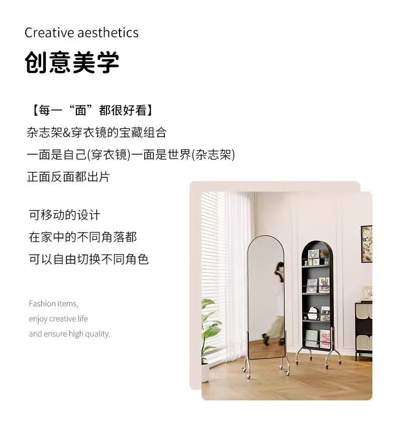 Millennium Washington Removable Mirror Full-length Mirror Ancient Style Storage Magazine Rack Floor-standing Book and Newspaper Storage Rack Rotating Dressing Mirror Black