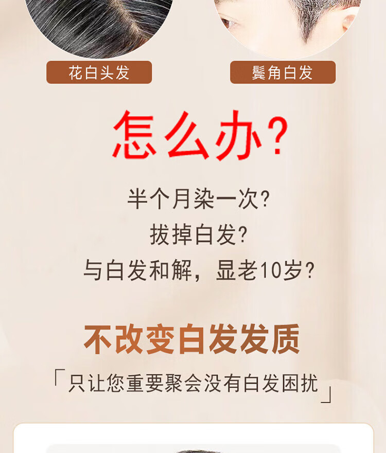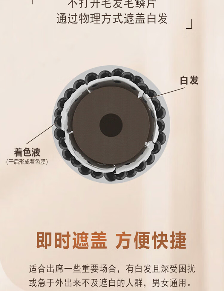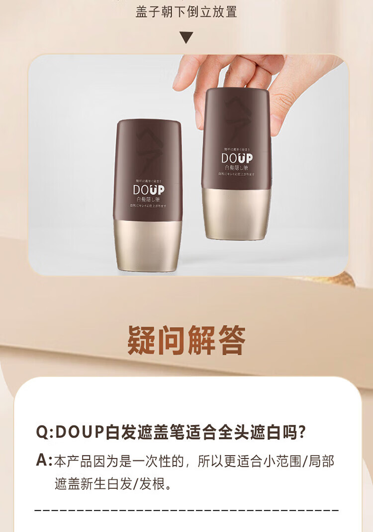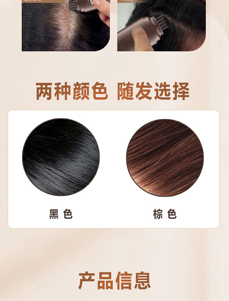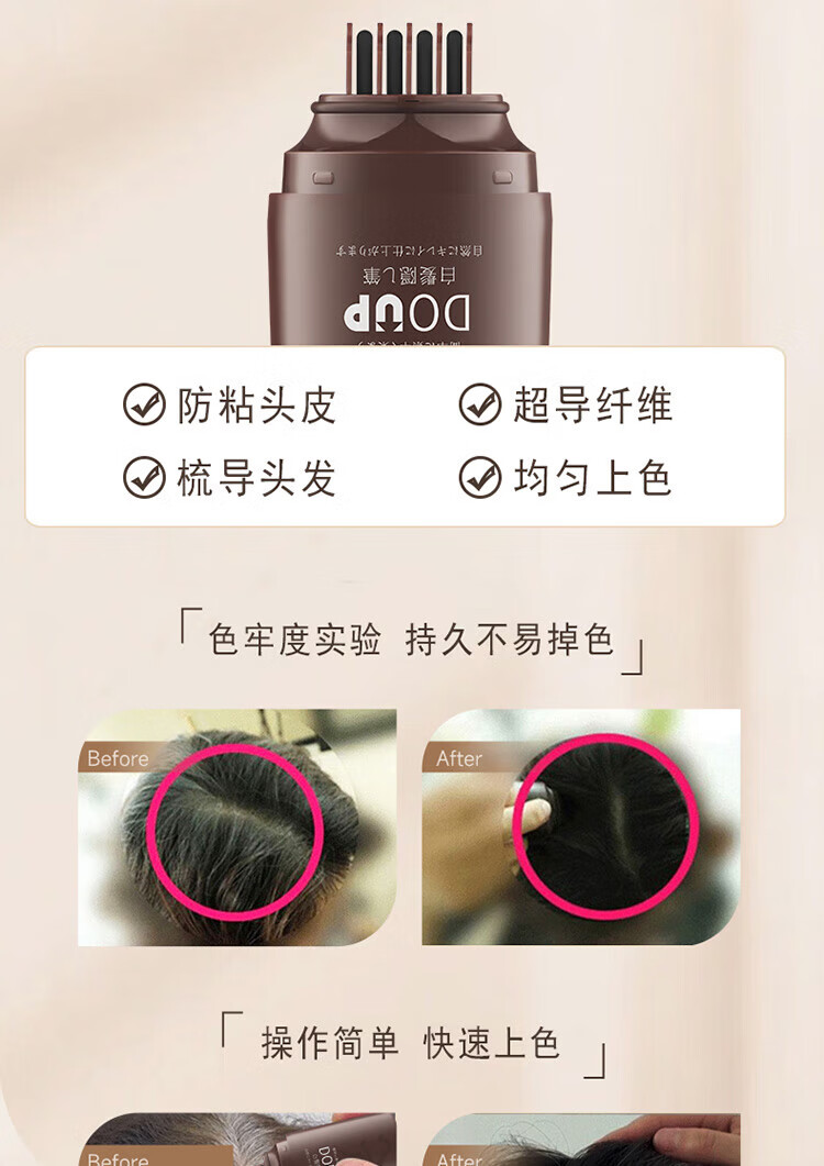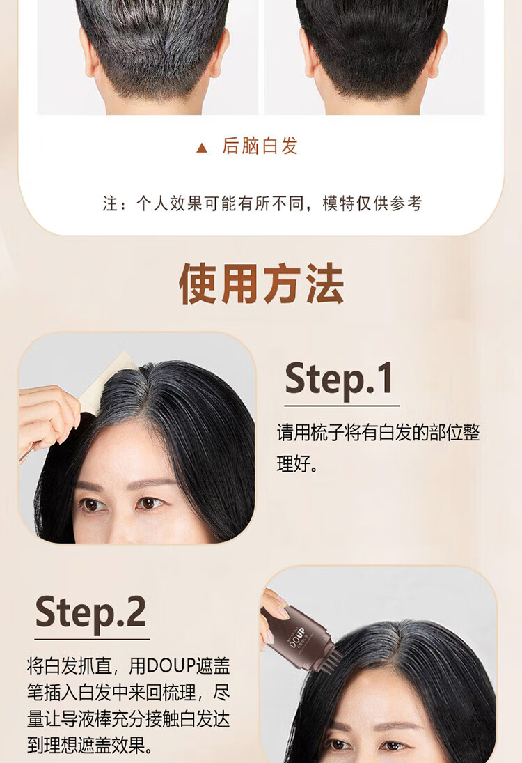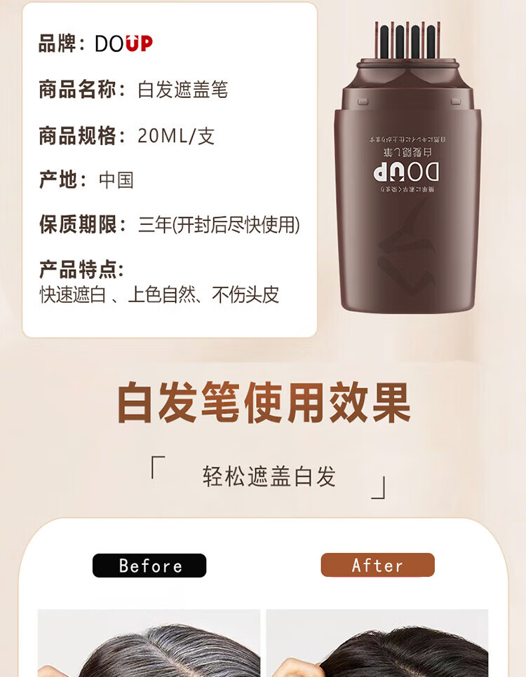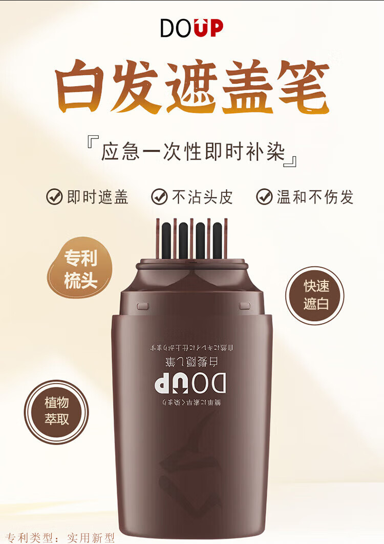 DOUP comb-type white hair cover pen, long-lasting disposable touch-up pen, plant-based cover white hair at home, instant color brown