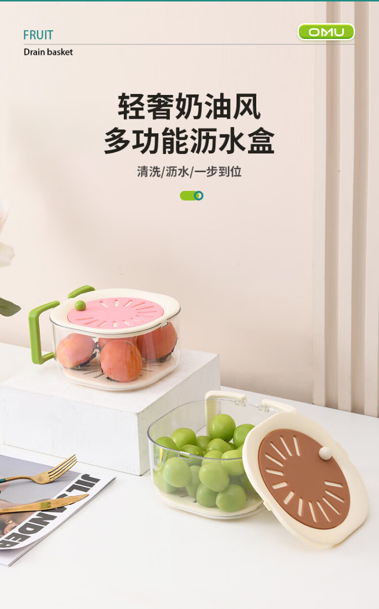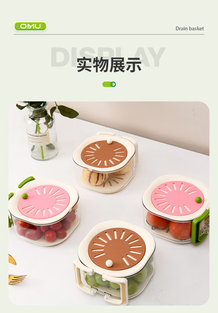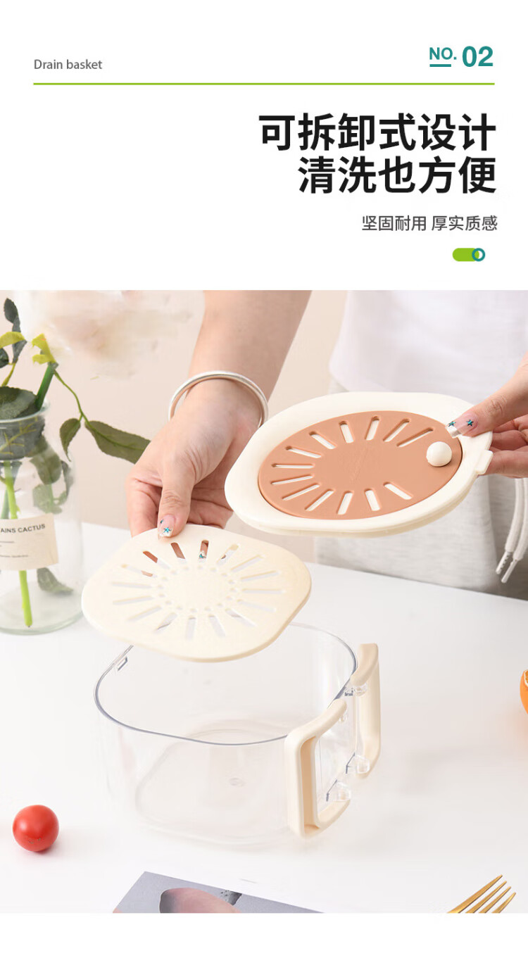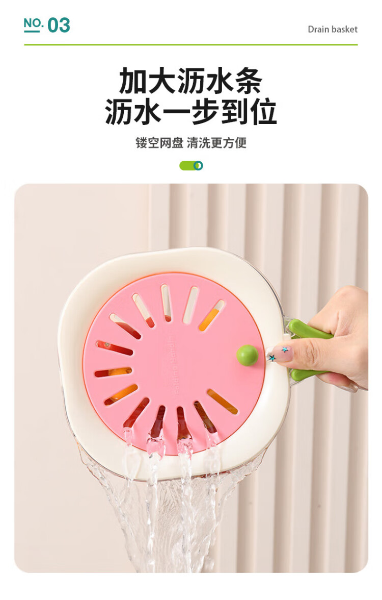 Ogilvy multifunctional drain basket for washing fruits with folding handle kitchen fresh-keeping bowl fruit basket drain basket raspberry pink