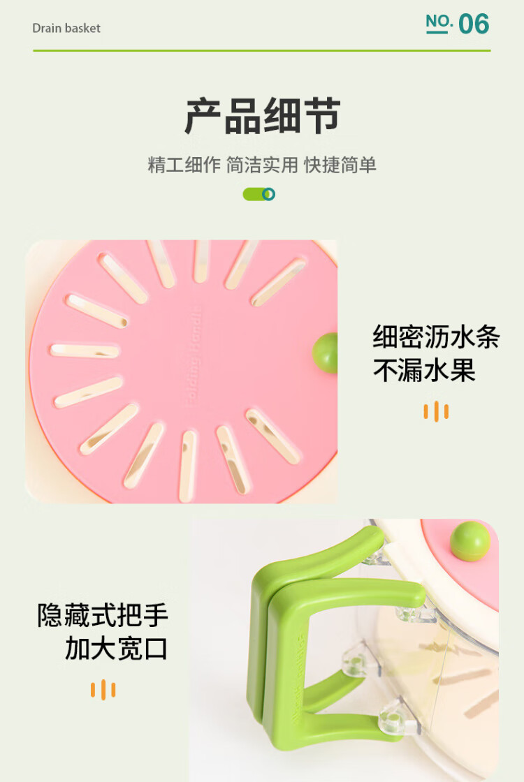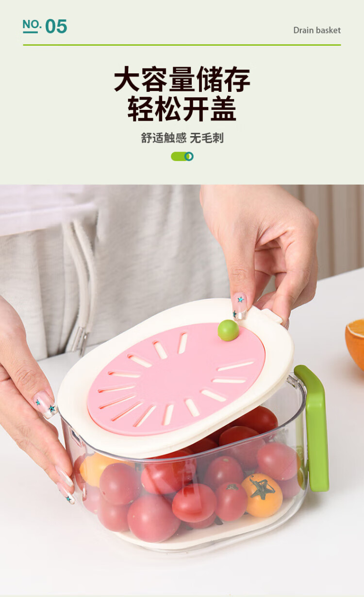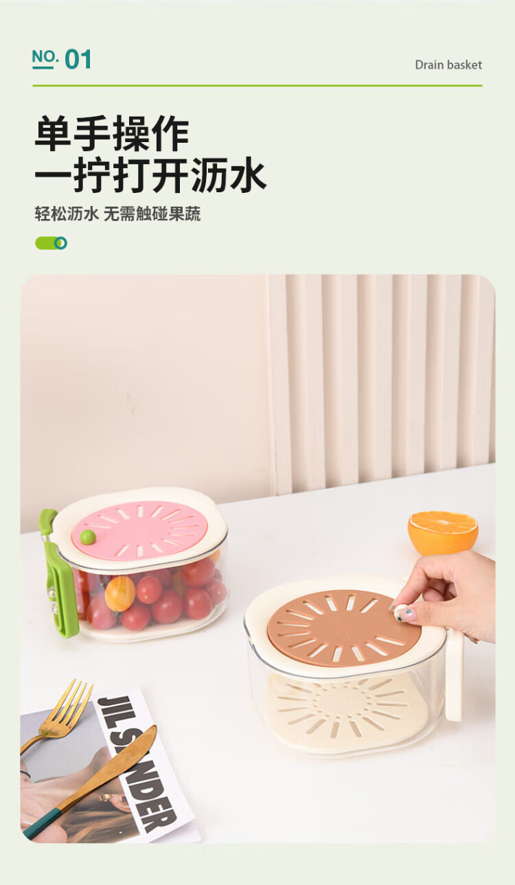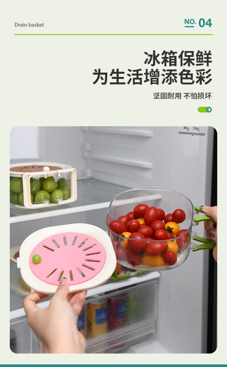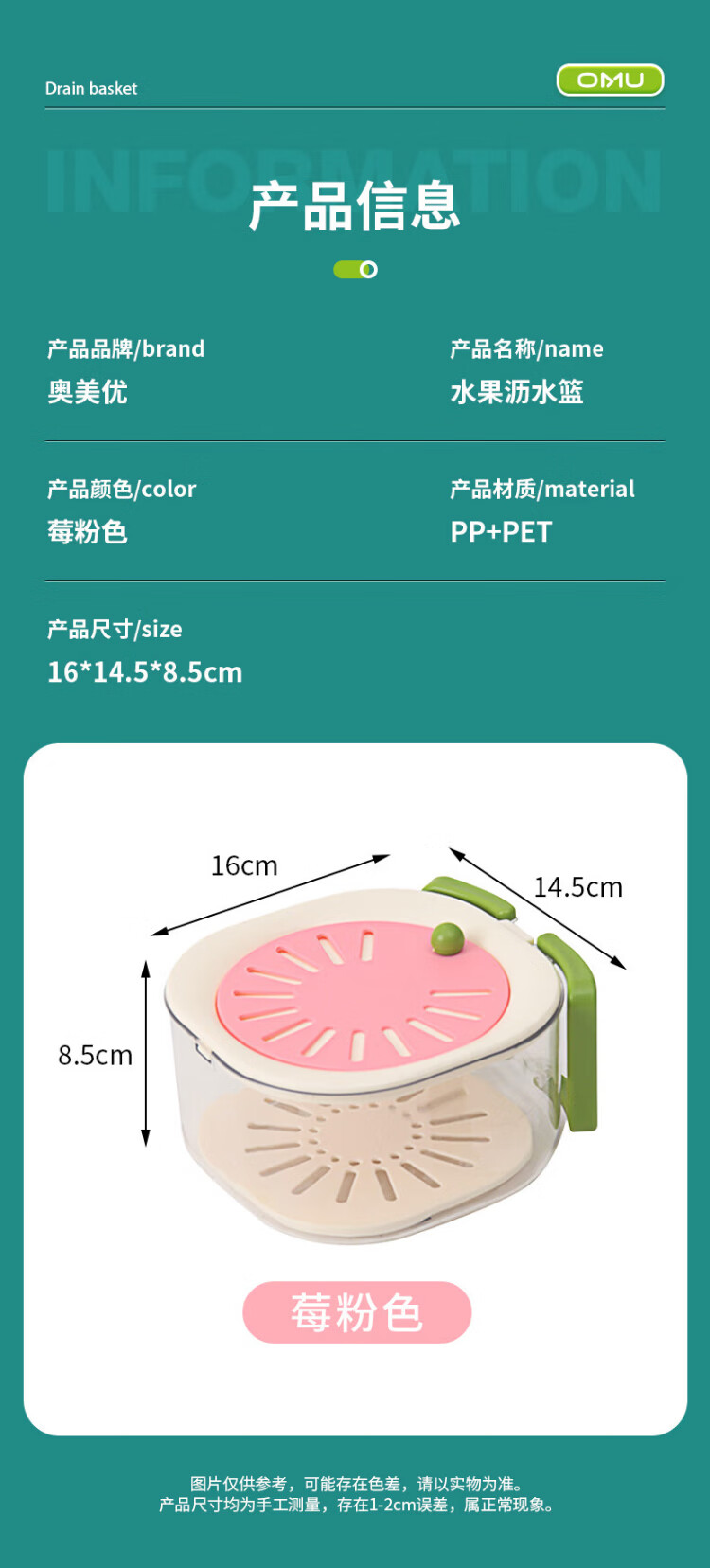 Ogilvy multifunctional drain basket for washing fruits with folding handle kitchen fresh-keeping bowl fruit basket drain basket raspberry pink