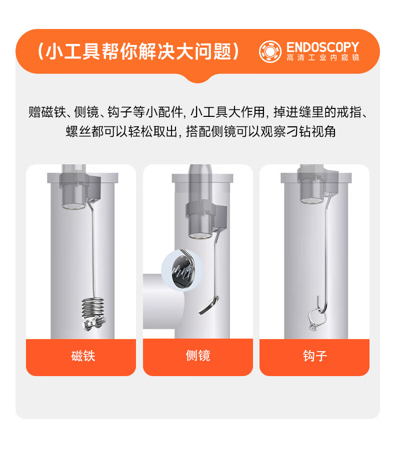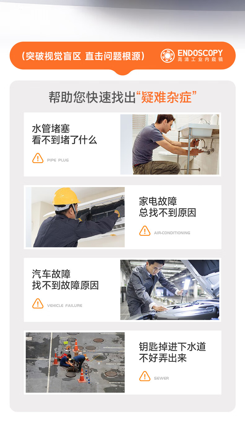 Car security endoscope, special high-definition camera for car sewer pipe repair, industrial waterproof probe, handheld visual detection