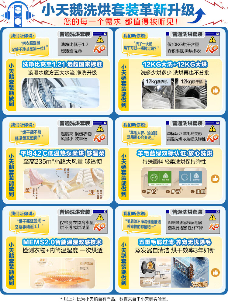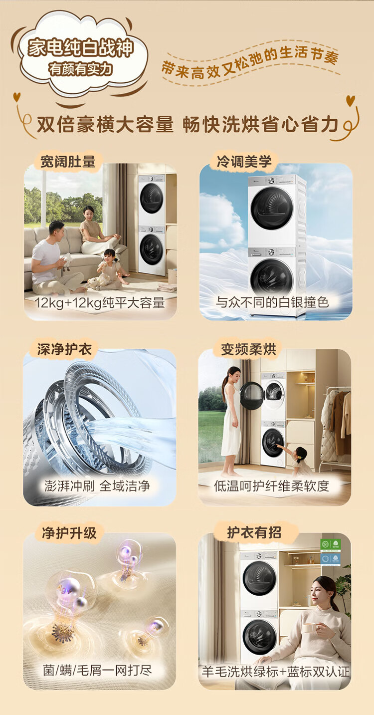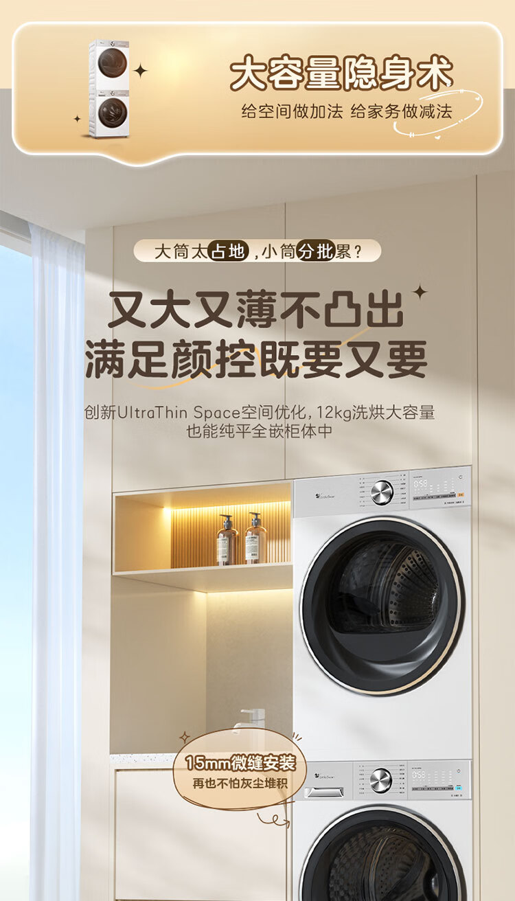 LittleSwan Xiaowumei 3.0 Light Edition Washing and Drying Set 12KG Large Capacity Front-loading Washing Machine Fully Automatic + Variable Frequency Heat Pump Dryer VE10PRO+10PRO National Subsidy
