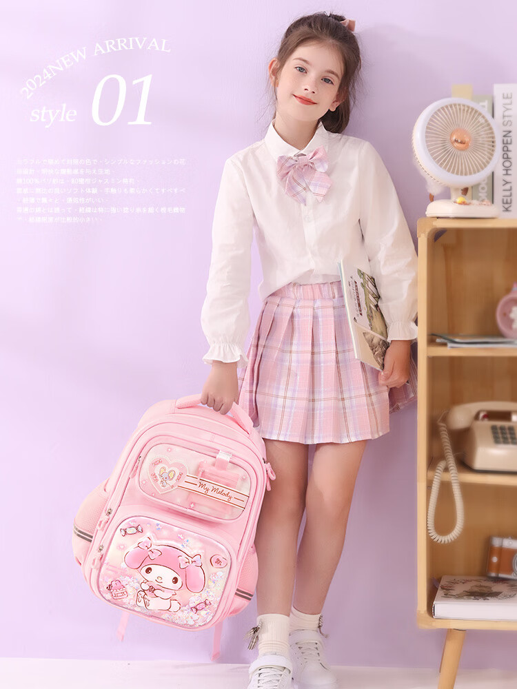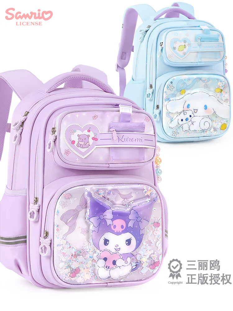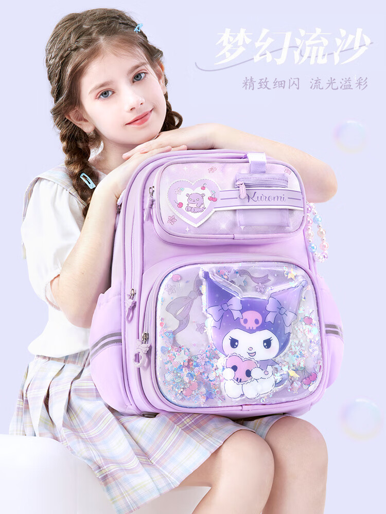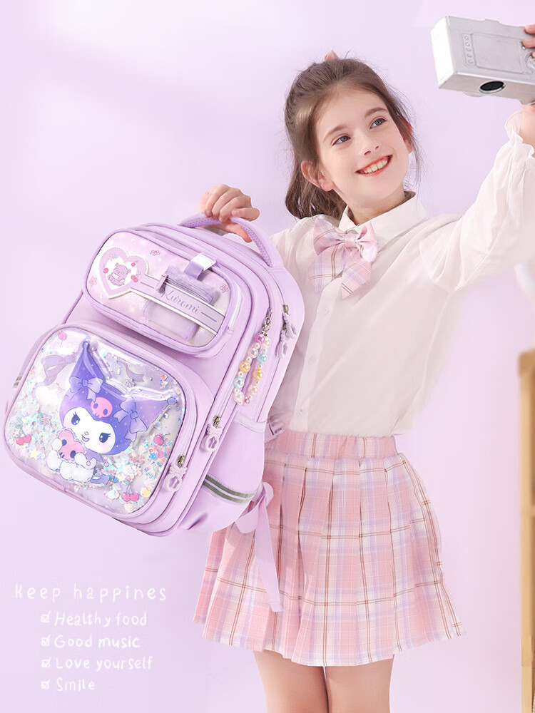 Hello Kitty primary school bag female third, second and first grade girls burden reduction anti-fall children's backpack 96702C Kuromi Purple