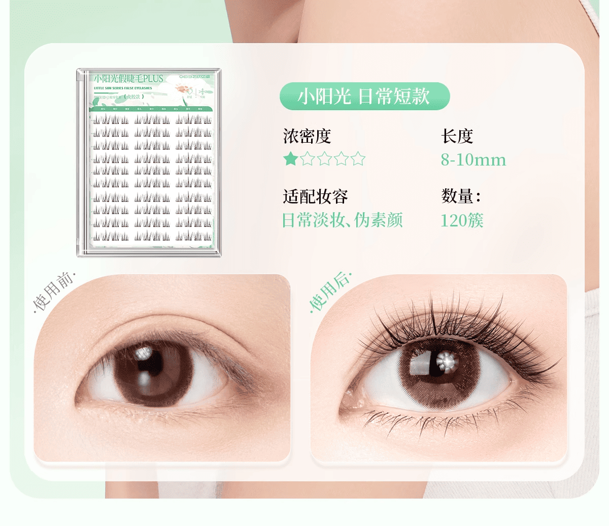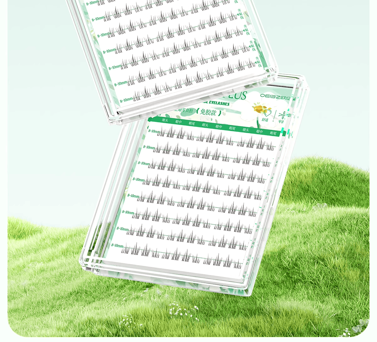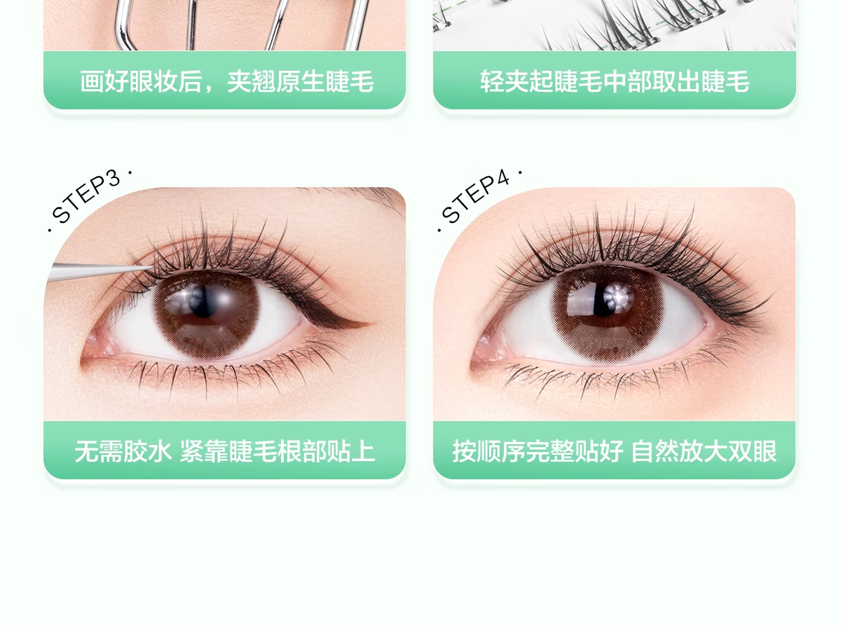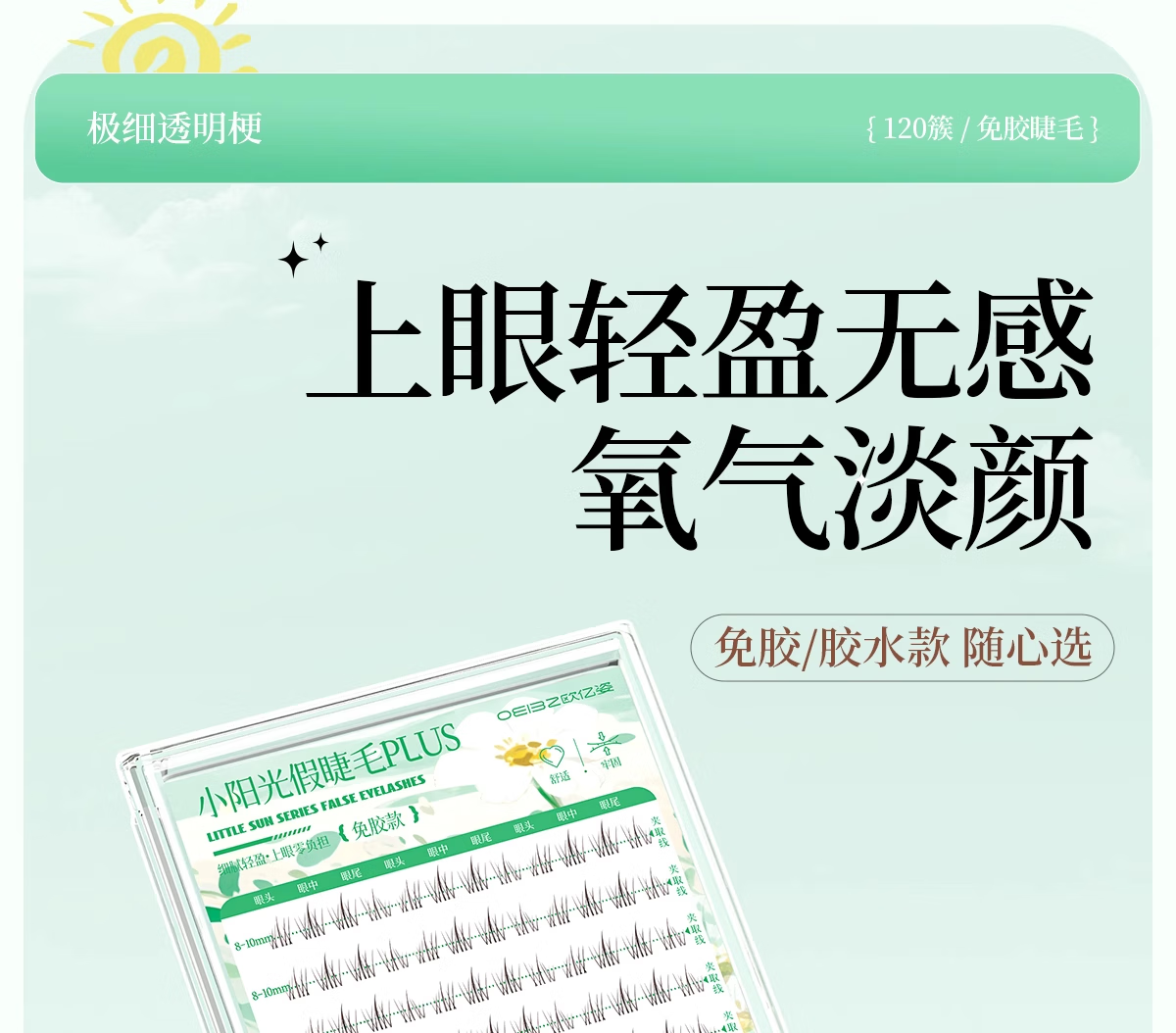 Oeiez glue-free false eyelashes for women, natural simulated sunflower self-adhesive transparent stems, easy-to-operate eyelashes for novices, 120 clusters
