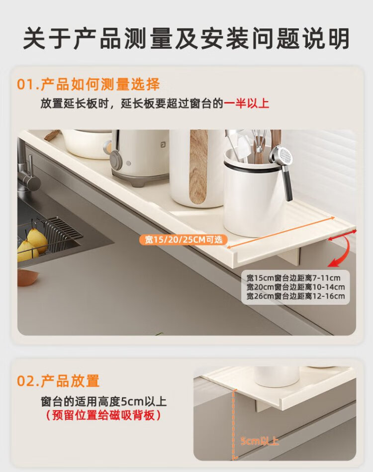 Anya multifunctional countertop widened window sill extension board kitchen storage punch-free magnetic storage rack 3
