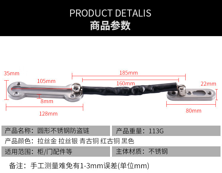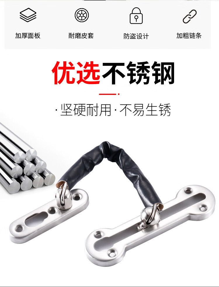 Shanglijin anti-theft chain thickened stainless steel door bolt hotel room door chain buckle door chain thickened door buckle bolt brushed silver
