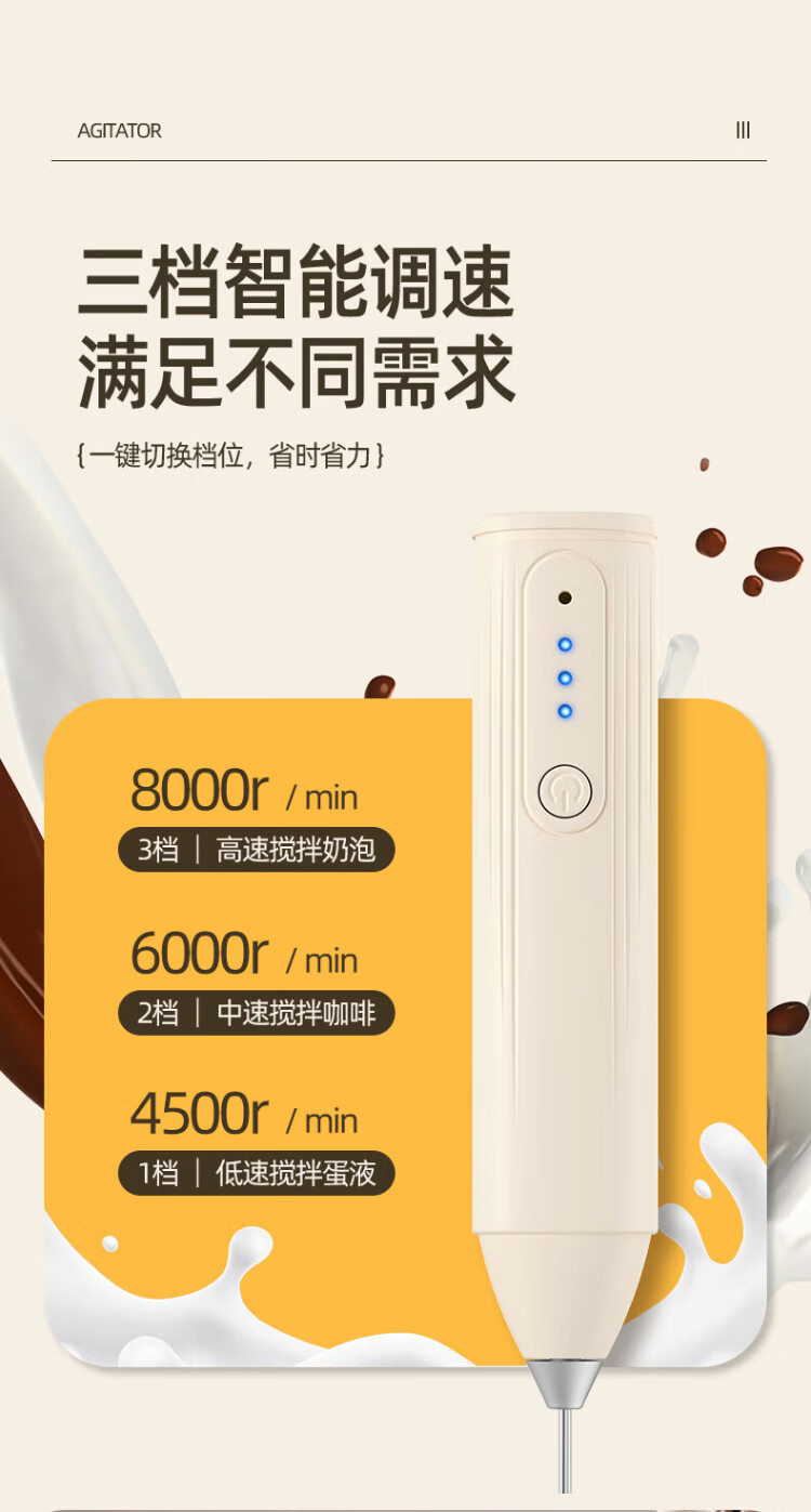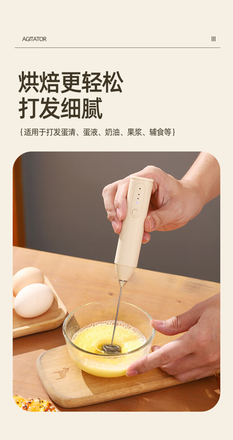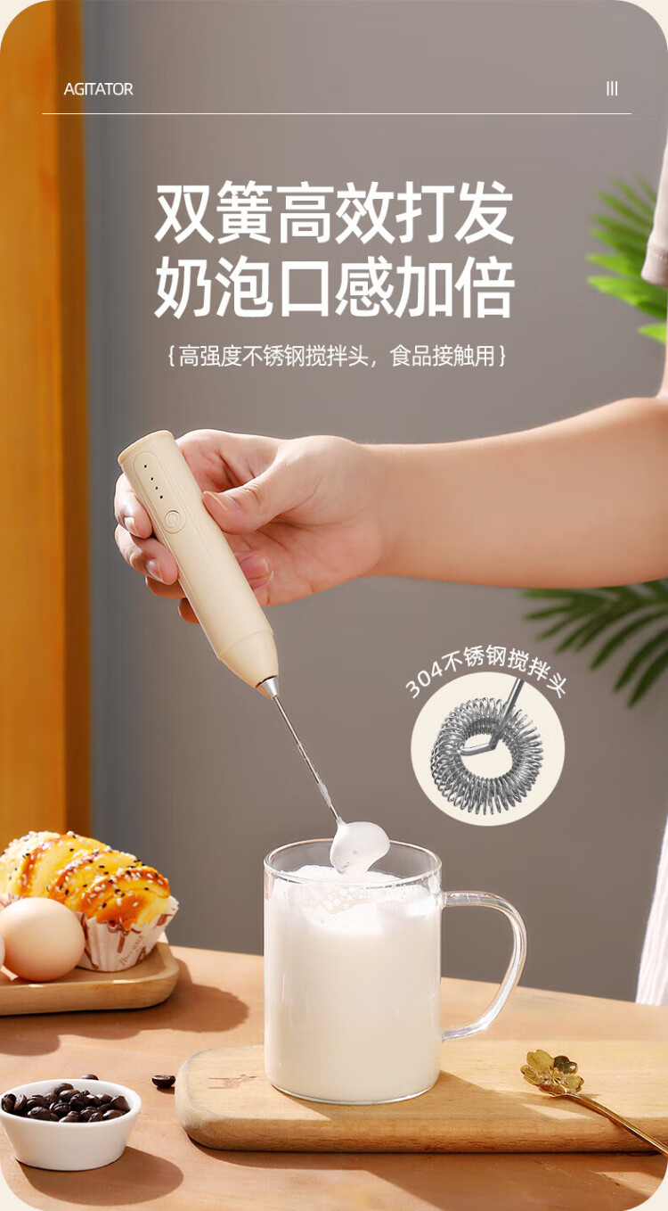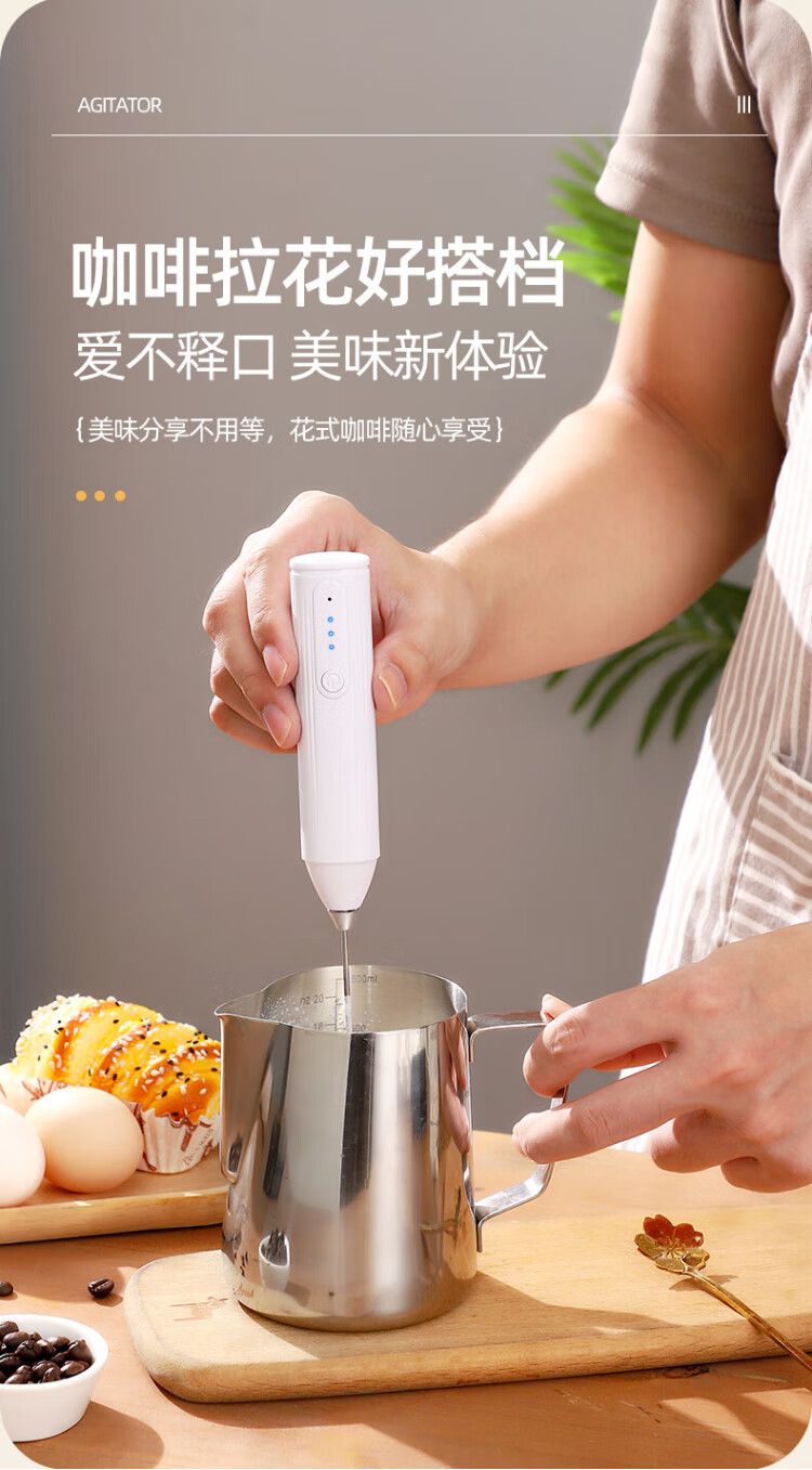 Youlaifu electric milk frother coffee milk frother household milk frother handheld mini stirring egg beater white