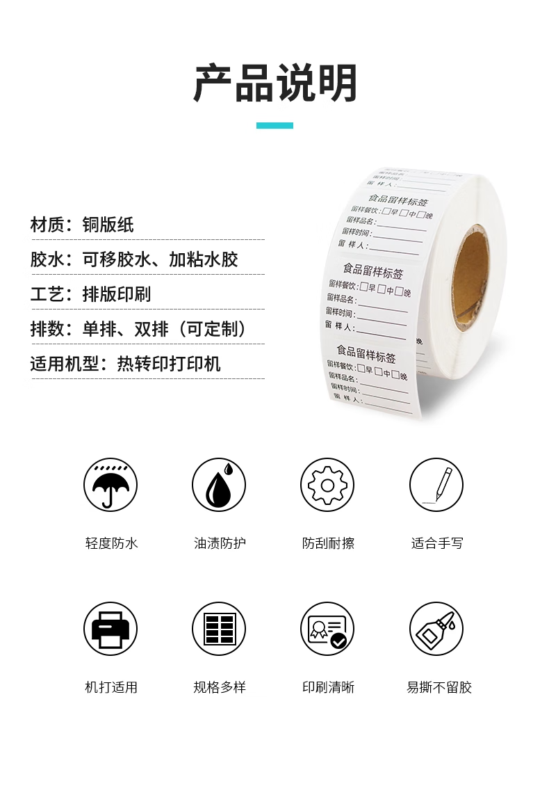 Zhaoshen sample retention label with grams, food food sample retention label, kindergarten canteen sampling label, single side, three meals, removable glue 5*4cm*1000 sheets, Jingpei