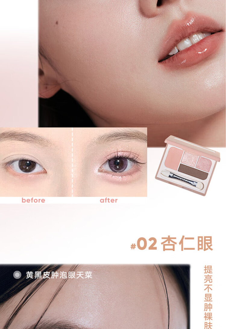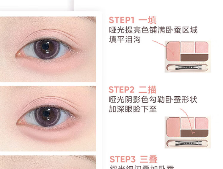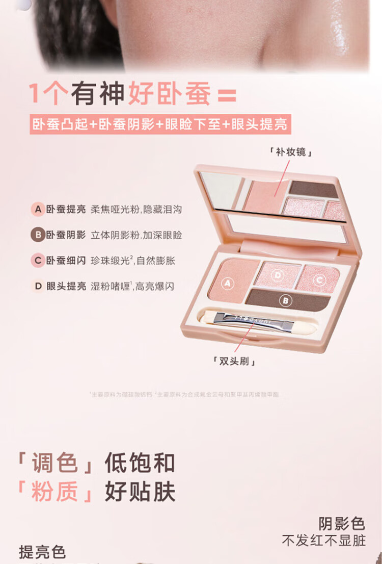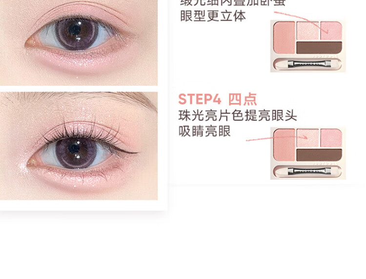 Judydoll Four-Color Silkworm Palette Brightening Down to Four-Color Eyeshadow Palette Pearlescent Sequins New Year's Gift 01 Pink Smart