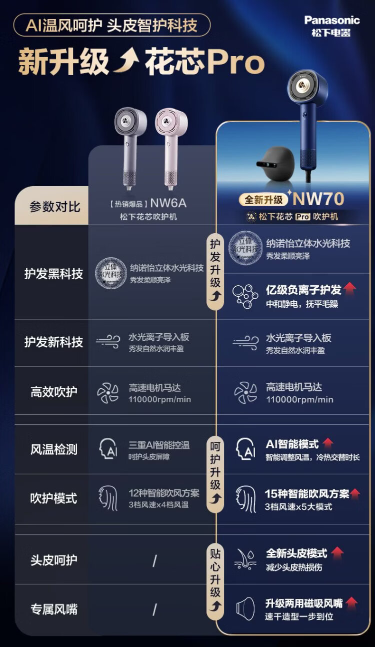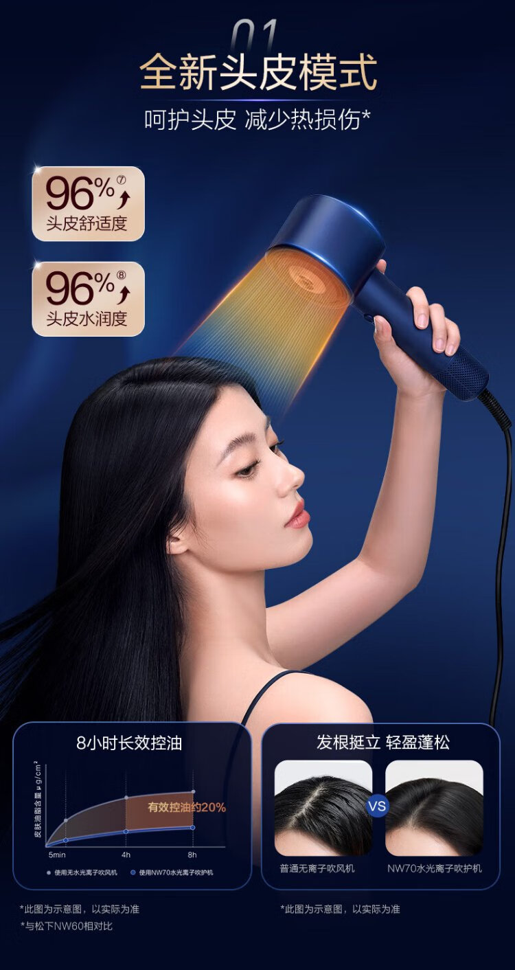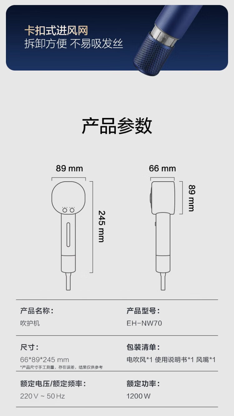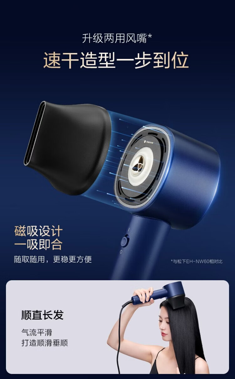 Panasonic Ouyang Nana's same style Huaxin Pro high-speed hair dryer Nanoyi household hair dryer negative ion as a New Year gift for girlfriend Haze Blue EH-NW70