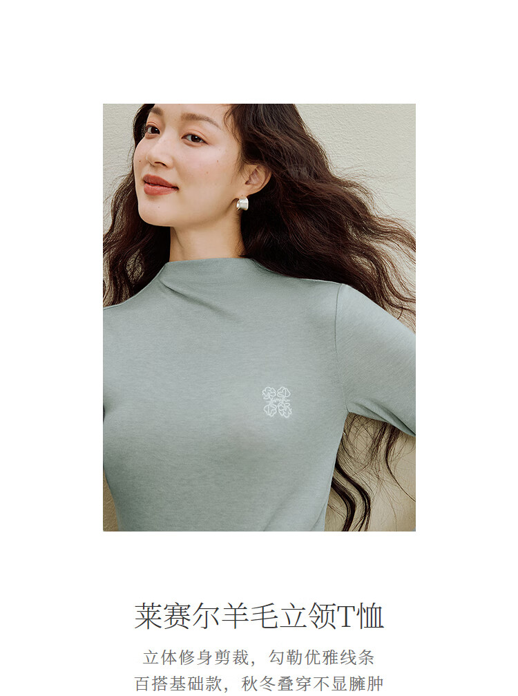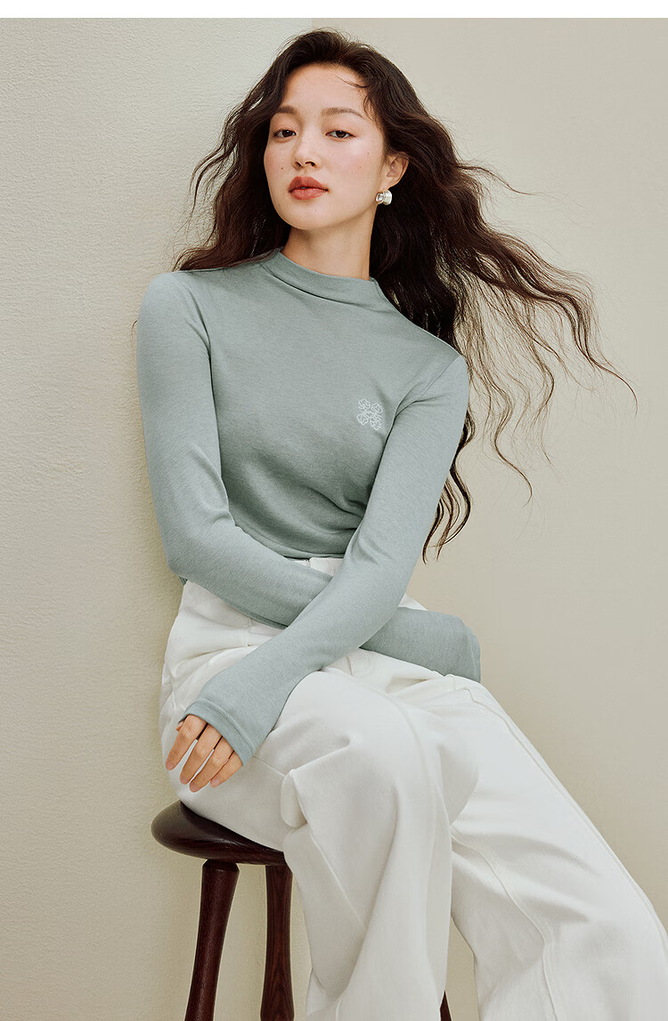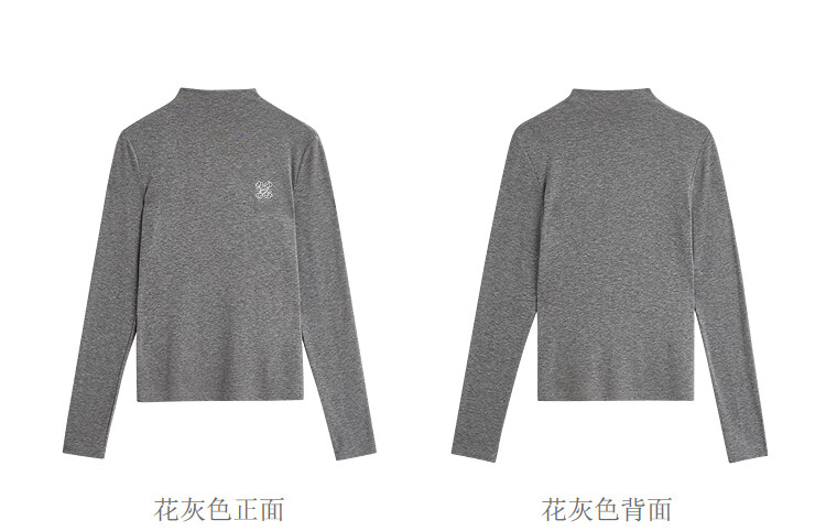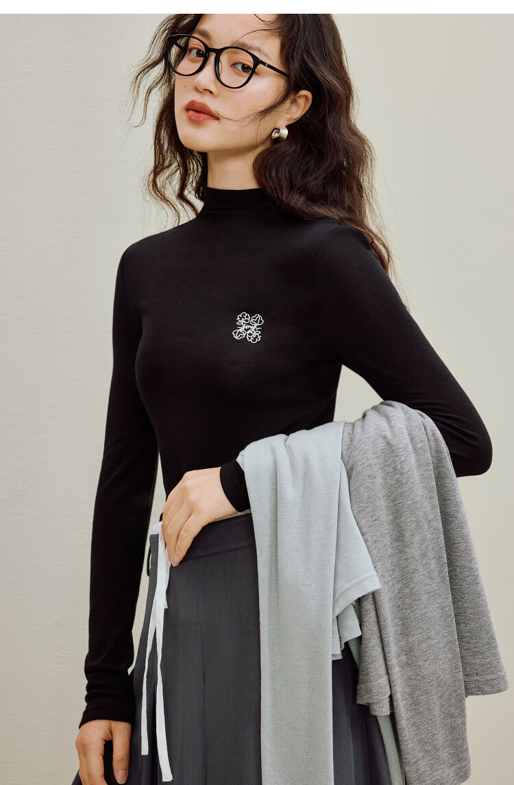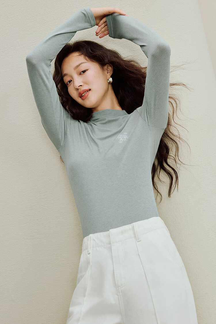 Inman Wool Stand Collar T-Shirt 2025 Autumn Women's New Layer Wear Slim Long Sleeve Bottoming Shirt Floral Gray M