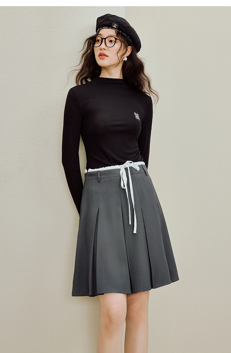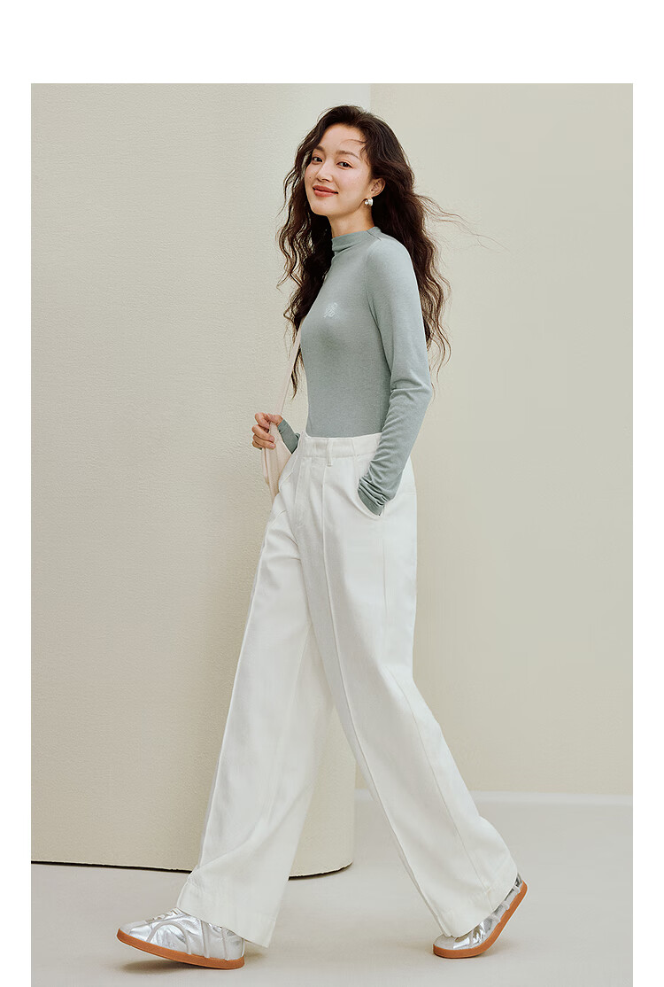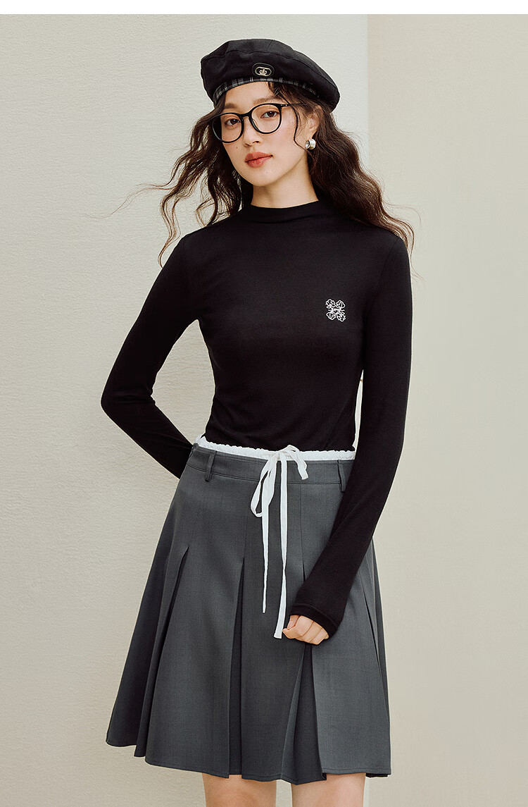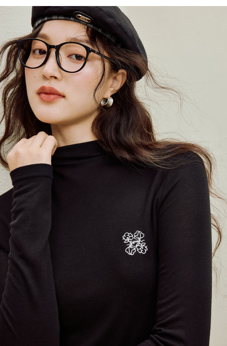 Inman Wool Stand Collar T-Shirt 2025 Autumn Women's New Layer Wear Slim Long Sleeve Bottoming Shirt Floral Gray M