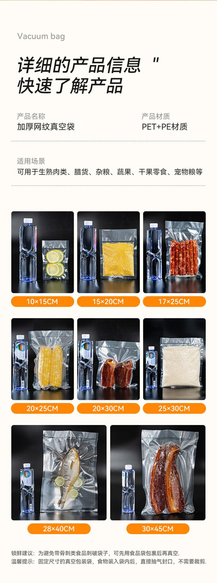 Temeiju (temeiju) vacuum sealing bag food vacuum bag thickened mesh plastic bag food sealing bag freshness small 100 pieces 10*15cm