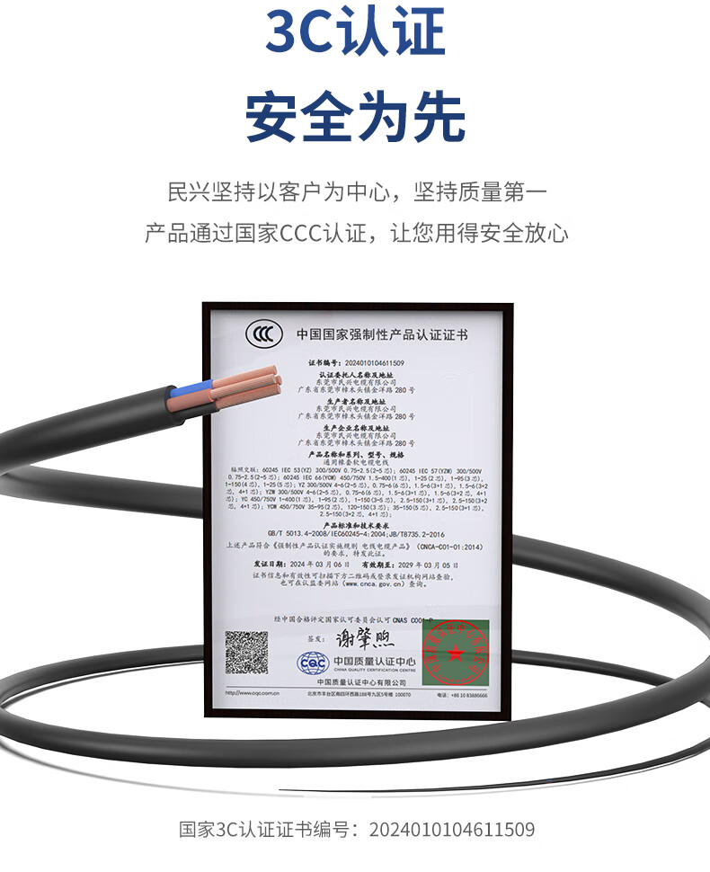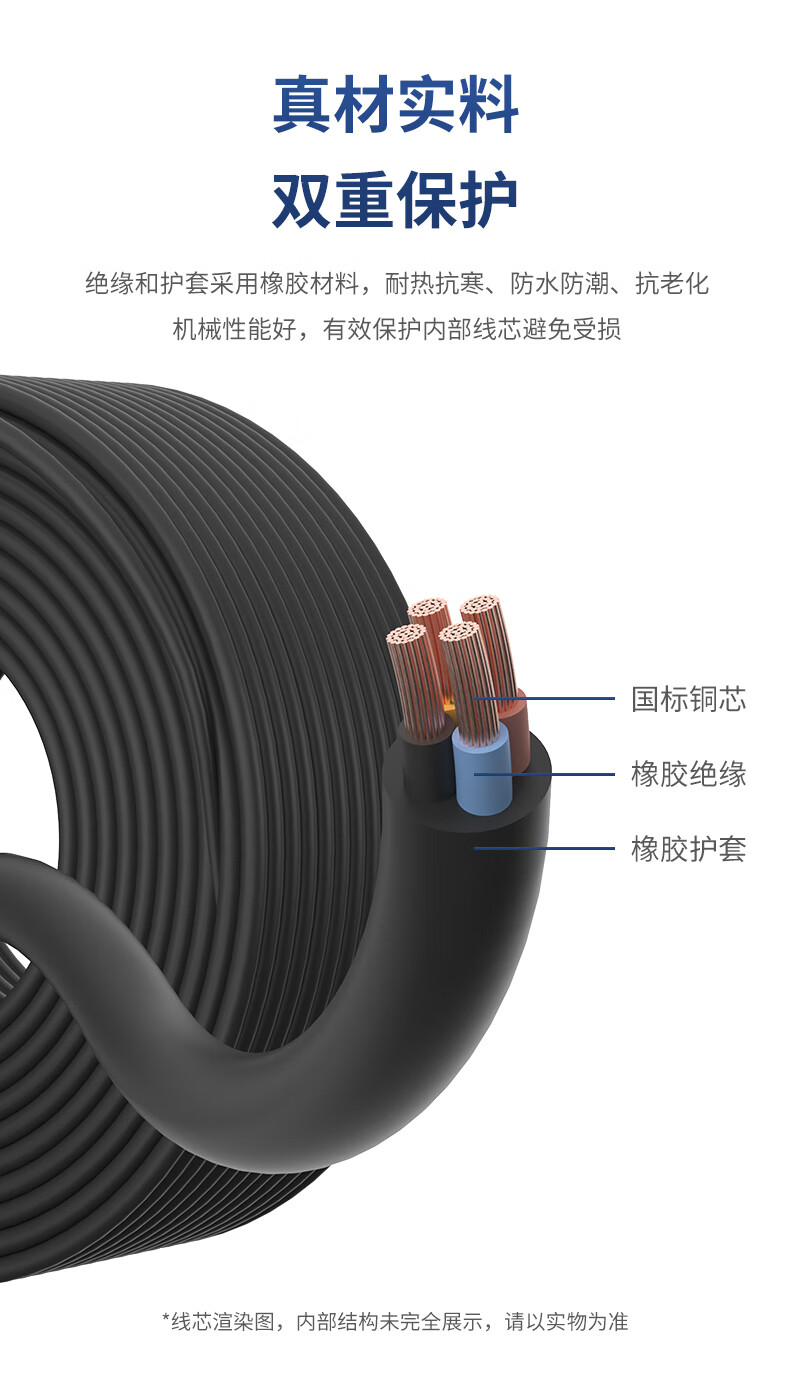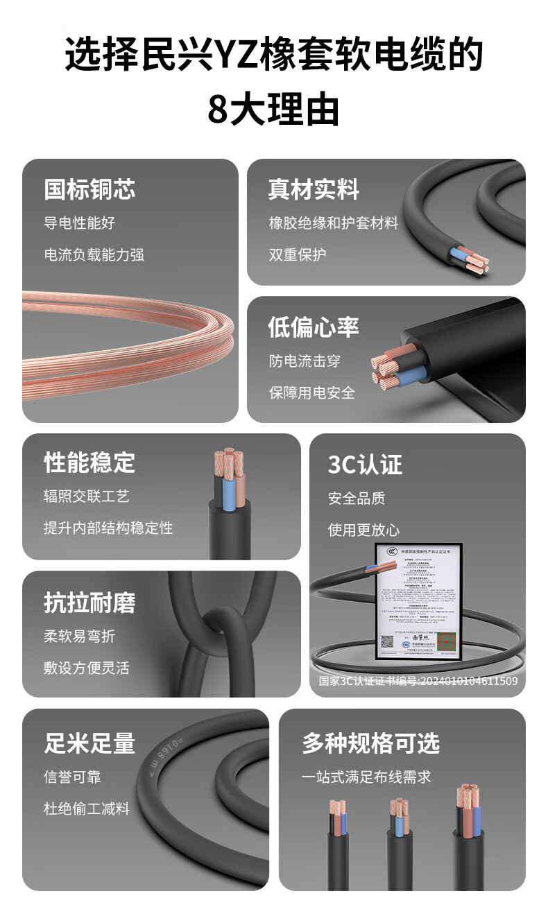 Minxing Cable 2.5 square meters copper core wire YZ rubber cable soft wire three core 3*2.5 square meters national standard copper wire sheathed wire YZ-3*2.5 square meters-1 meter
