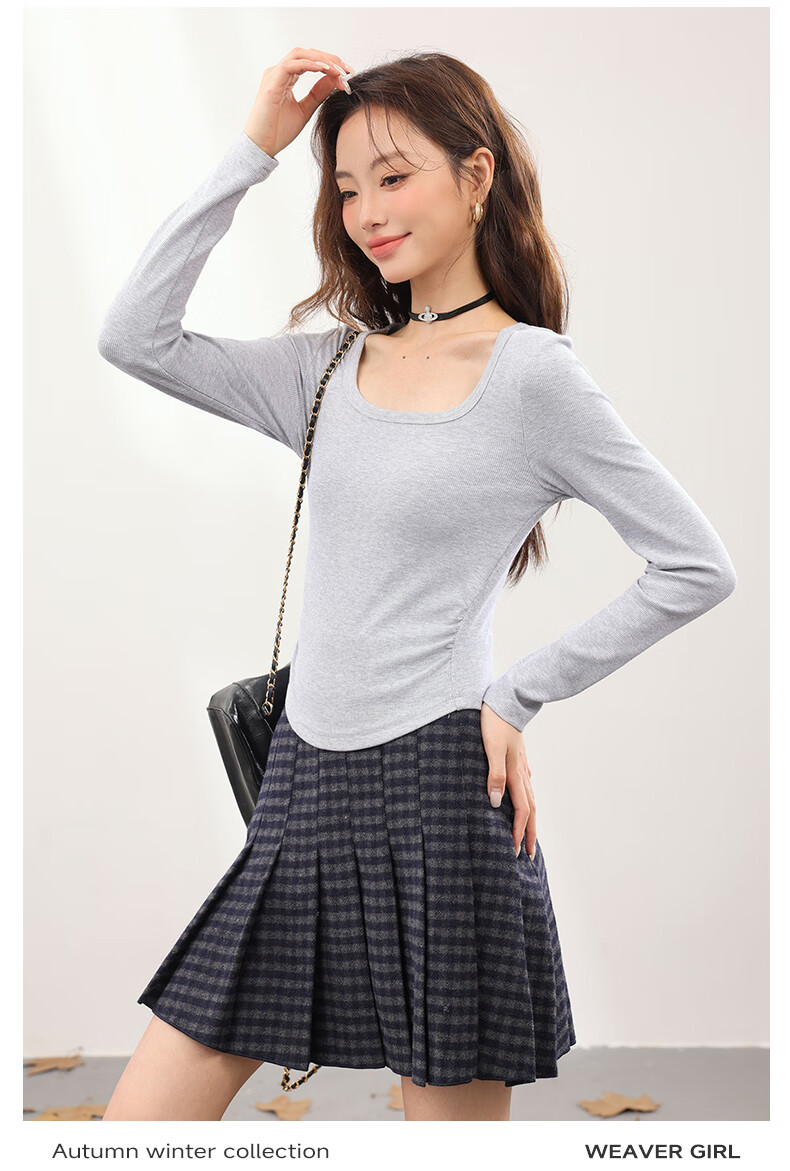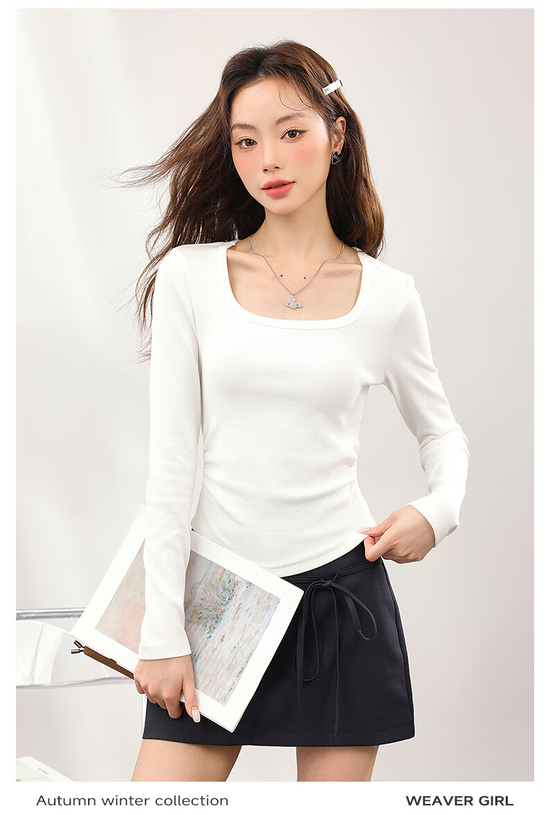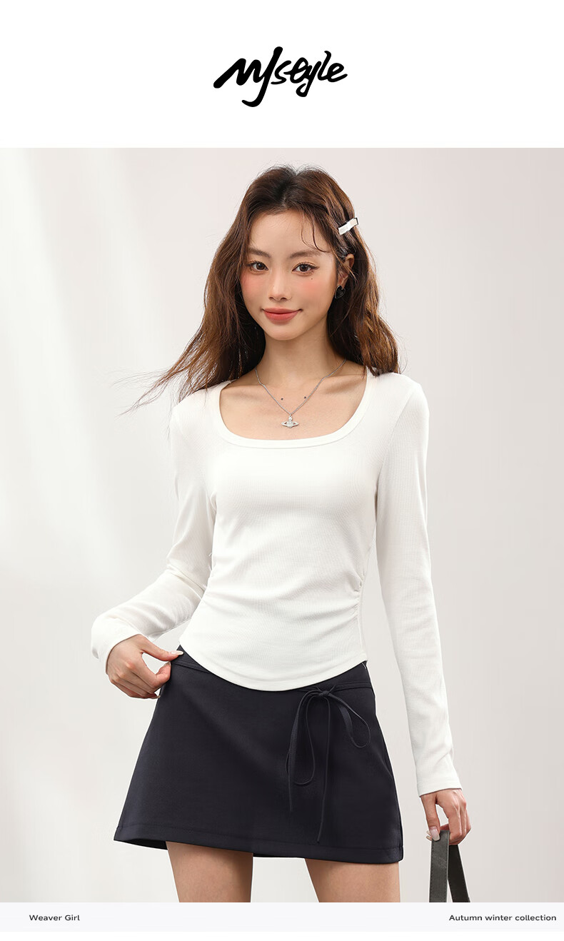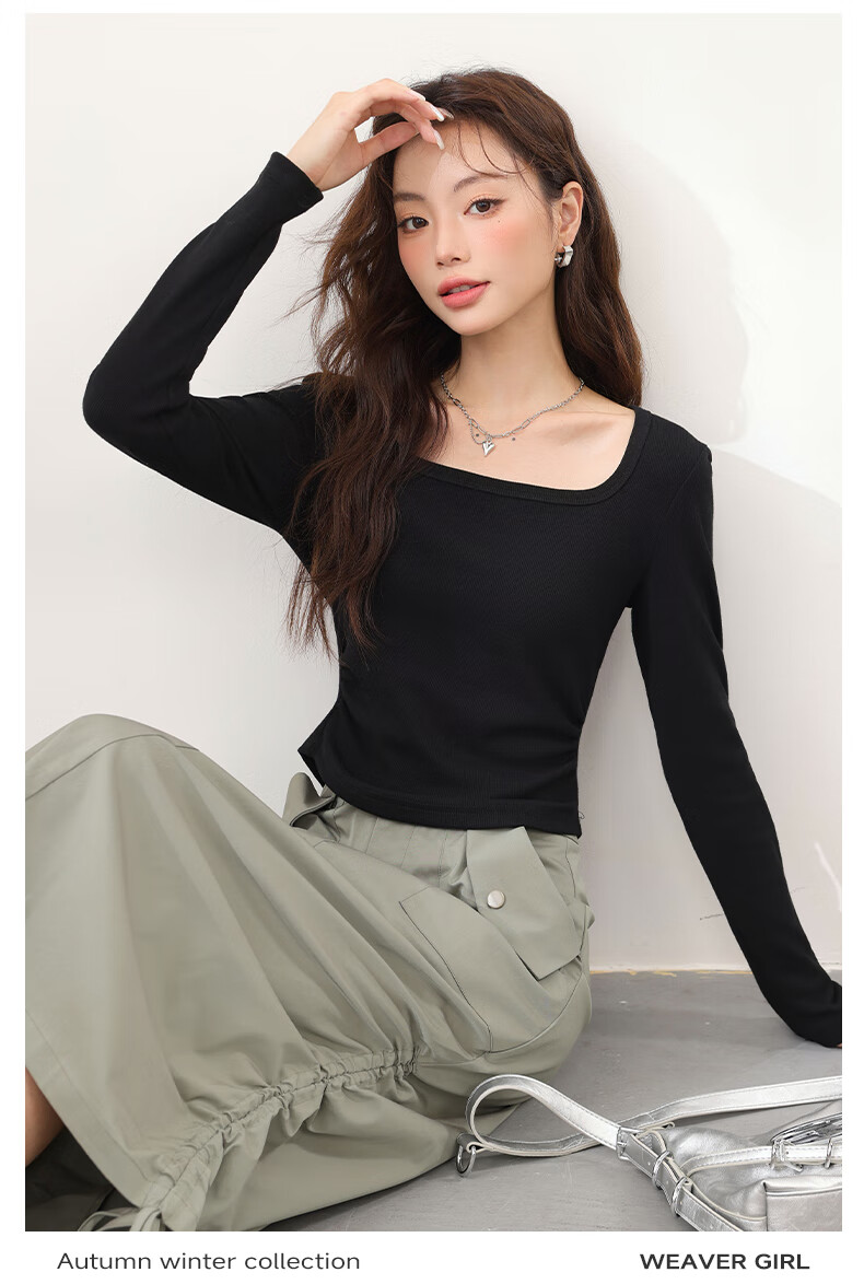 MJ STYLE Square Neck Slim Bottoming Shirt Women's 2026 Spring and Autumn New Style Simple Small Slim Korean Knitted Inner Top