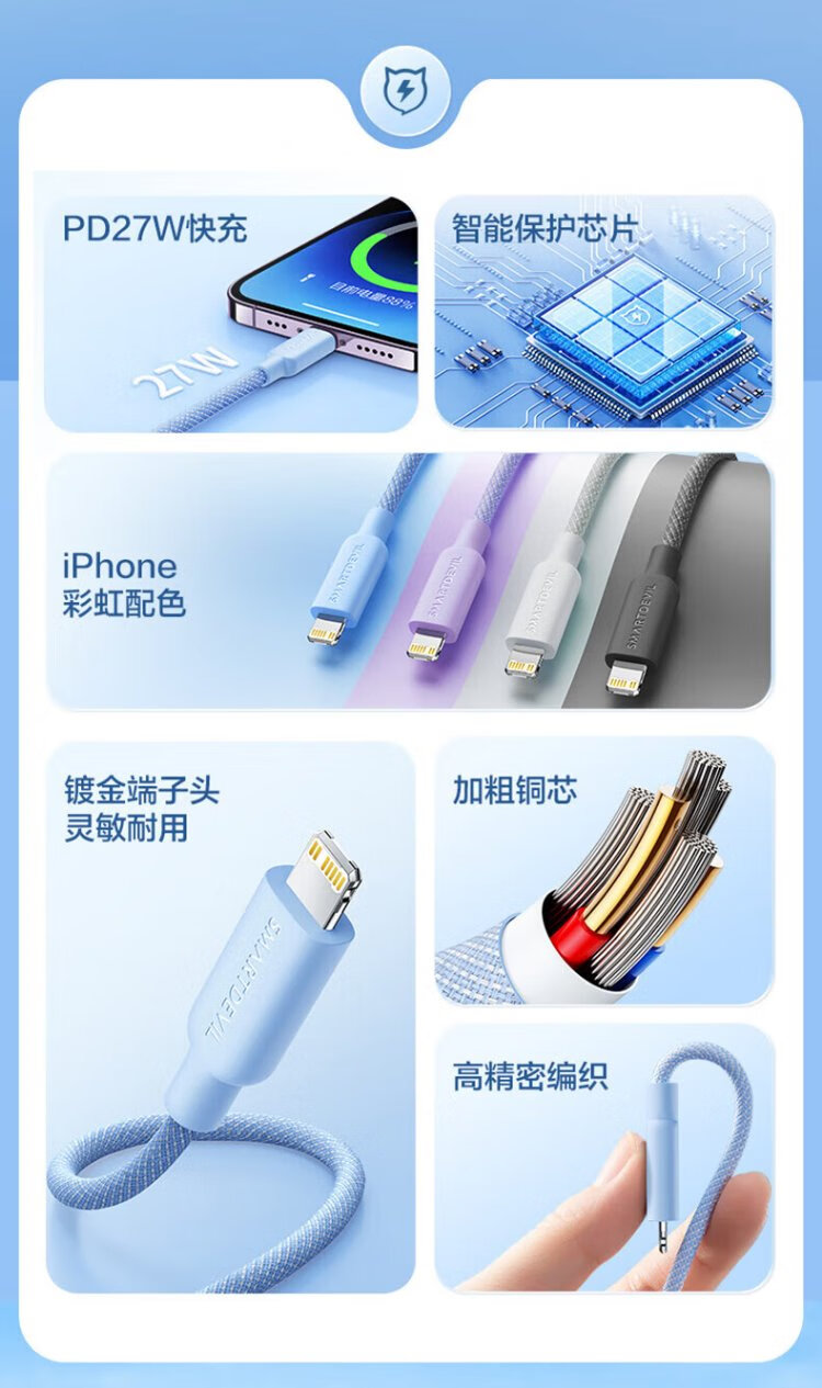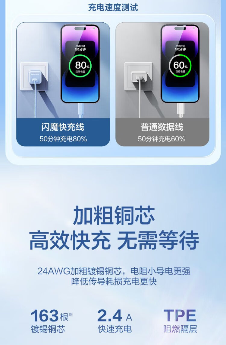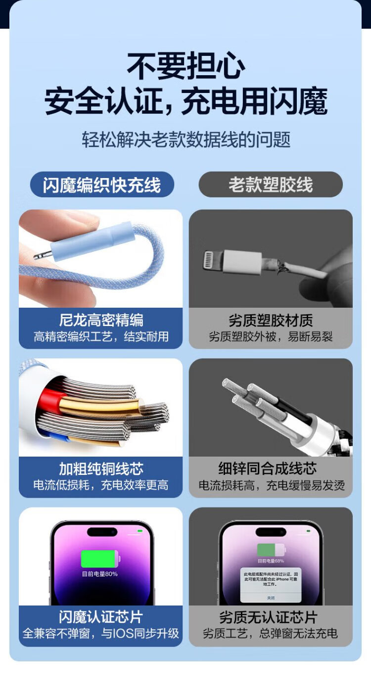 Flash Magic Apple data cable 2.4A fast charging charging cable suitable for iPhone14/13/12Pro/11Pro/XR mobile phone charger cable 1.2 meters black