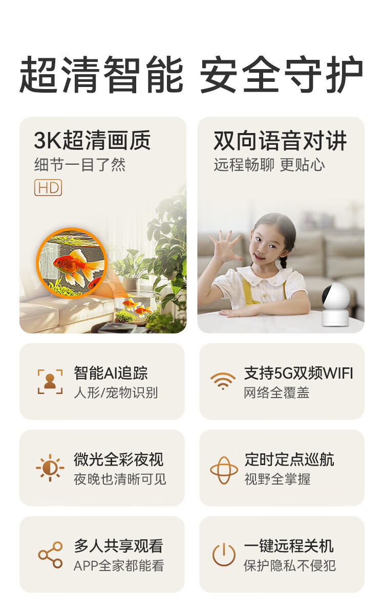 Made in Tokyo, smart camera V5 5 million pixels 3K high-definition home surveillance camera 5G dual-band WiFi AI humanoid watch 360-degree panoramic low-light full-color night vision
