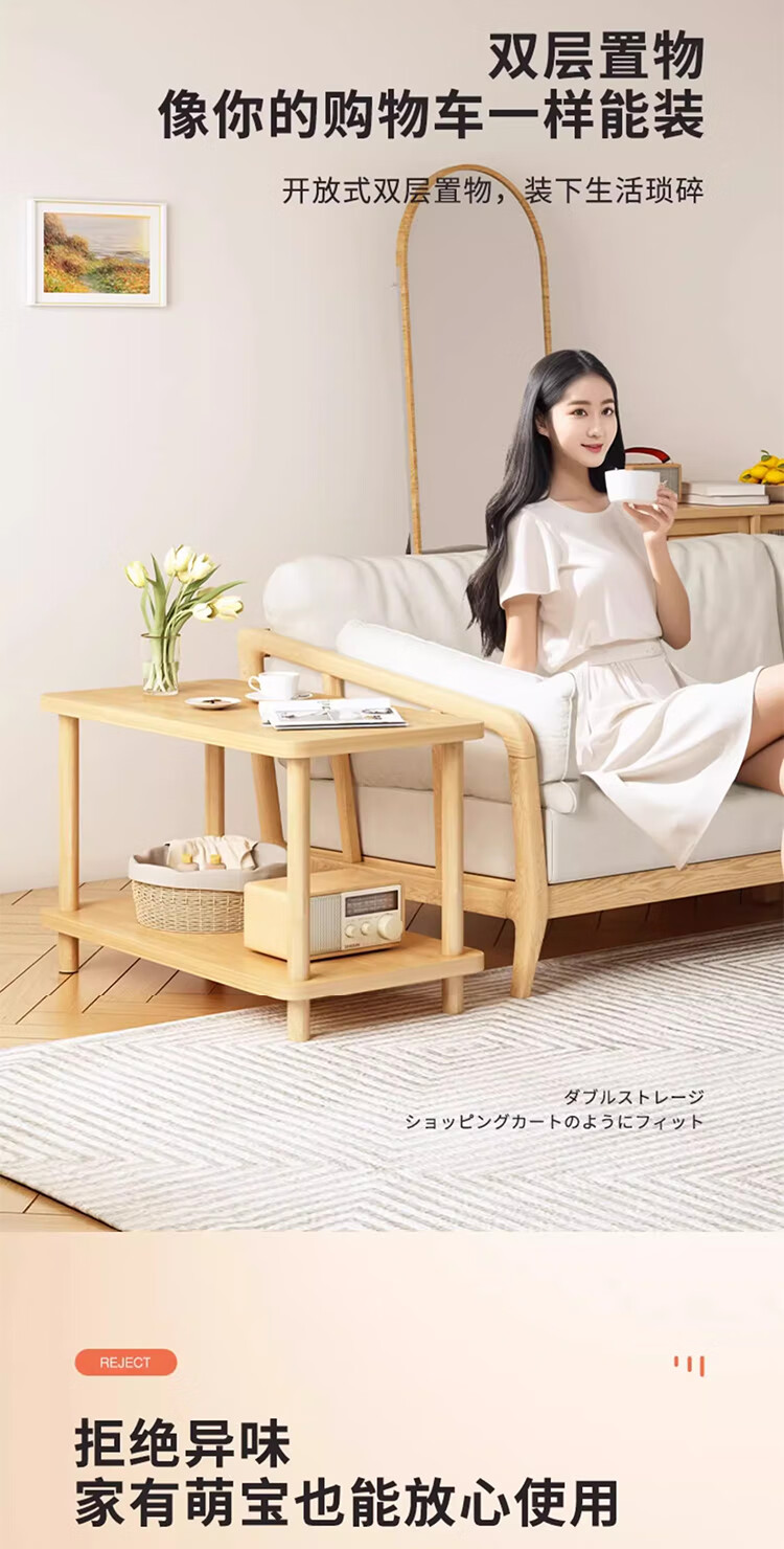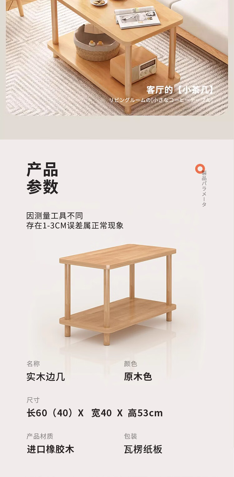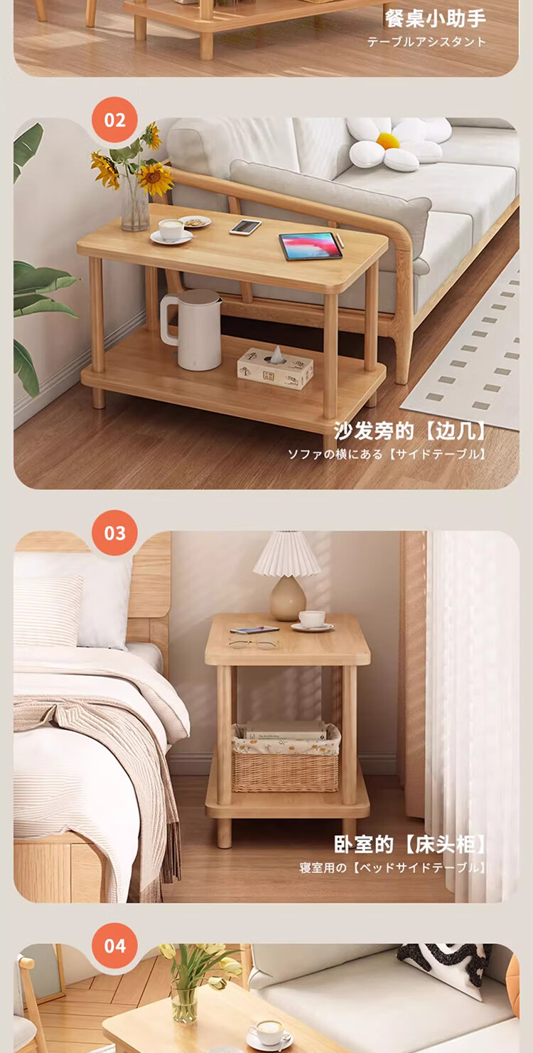 Yimi Love Coffee Table Shelf Small Solid Wood Modern Simple Living Room Bedside Cabinet 0.6m*0.4m BJ-02