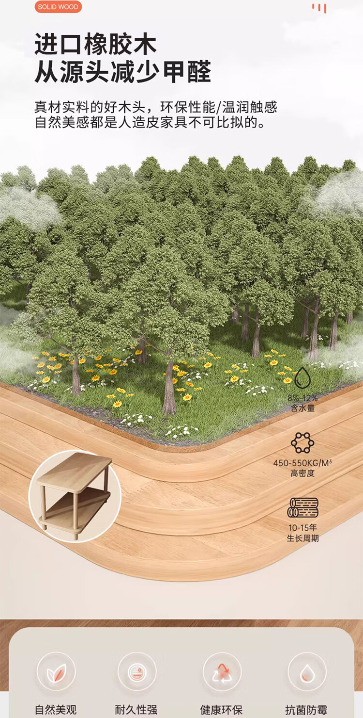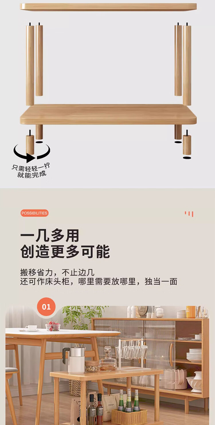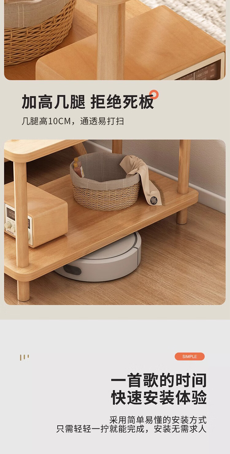 Yimi Love Coffee Table Shelf Small Solid Wood Modern Simple Living Room Bedside Cabinet 0.6m*0.4m BJ-02
