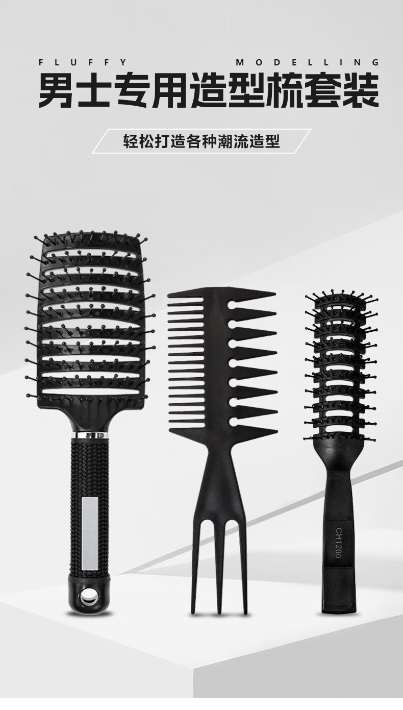 Baicuilai Spare Rib Comb Straight Hair Men's Styling Comb Massage Fluffy Hair Style Large Tooth Styling Comb Set Big Back Oil Head